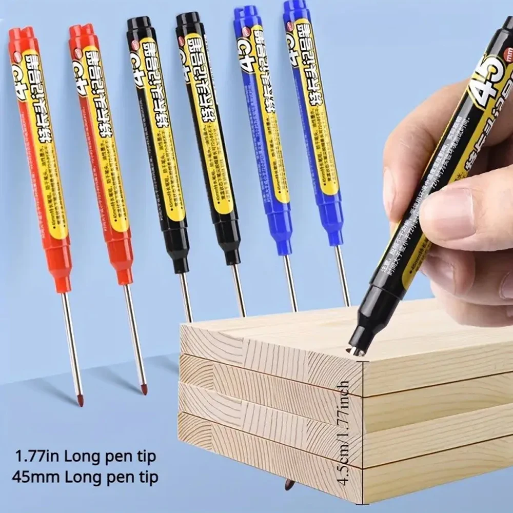 Lot 45mm Waterproof Long Head Nib Deep Hole Markers Pen Tile Carpenter Pen Multi-purpose for Woodworking Black/Blue/Red Ink