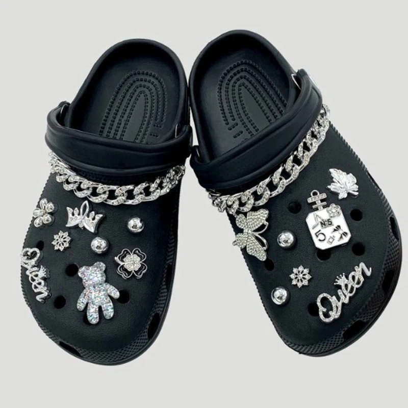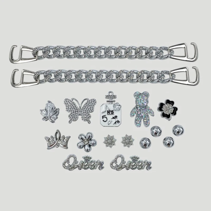 17PCS Luxury Designer Shoe Charm DIY Silver Crystal Bear Shoe Decoration Buckle for Hole Shoes Accessories