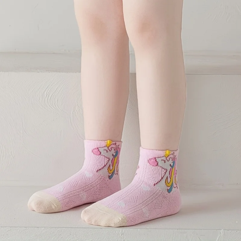5 double mesh girls unicorn design with glue non-slip short tube children's socks for 1-12 years old girls