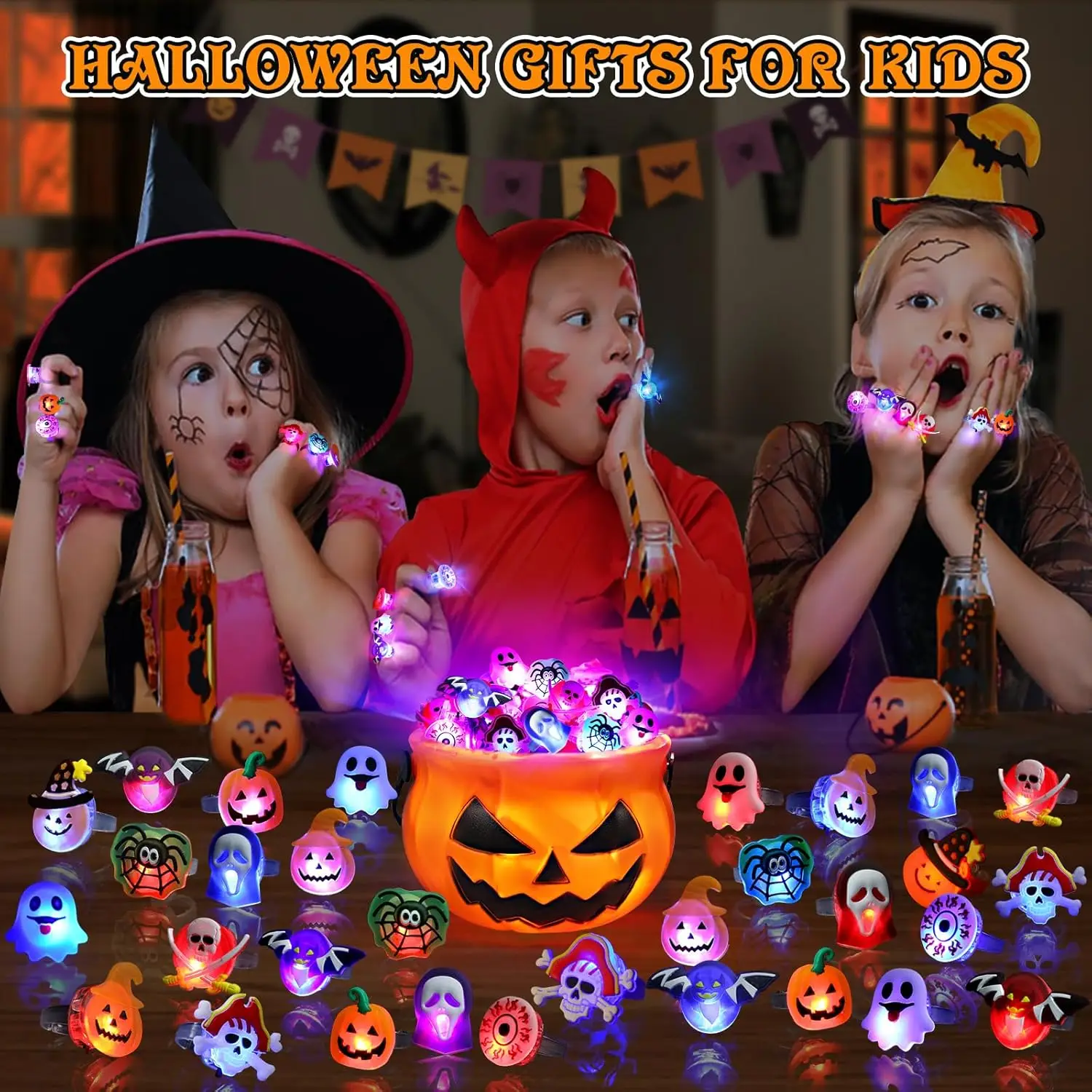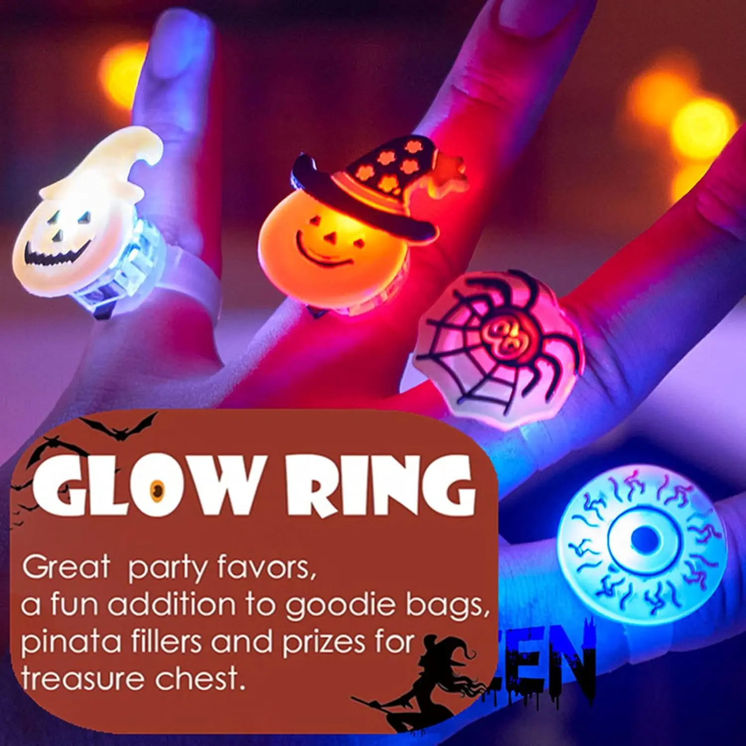 20/50pc Halloween LED Light Up Rings Toys Horror Pumpkin Ghost Spider Glow Finger Rings for Kids Trick Party Supplies Party Gift