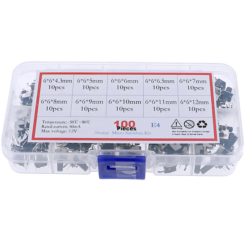 aliexpress , ali , shop , ali shop , online , store , online shop , online store , buy , sell , 100pcs 10Value 6x6mm Momentary Tactile Tact Mini Switch Mixed kit Box 6*6*4.3/5/6/6.5/7/8/9/10/11/12mm Right Angle With stent