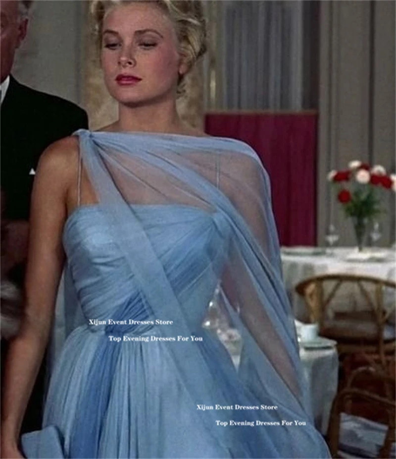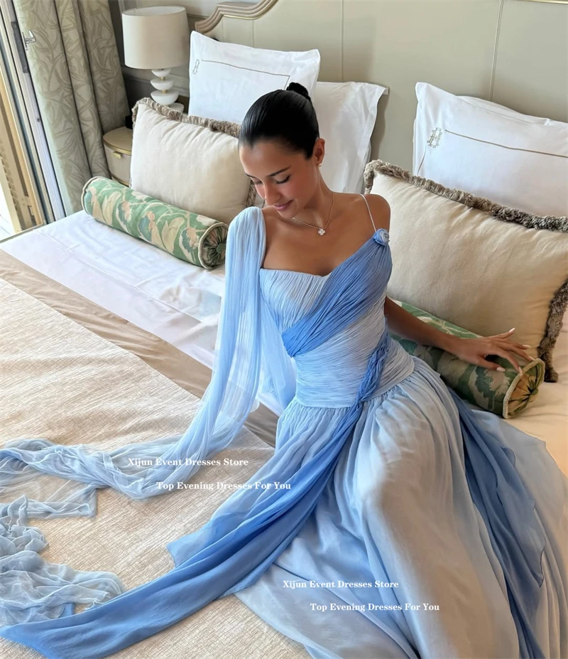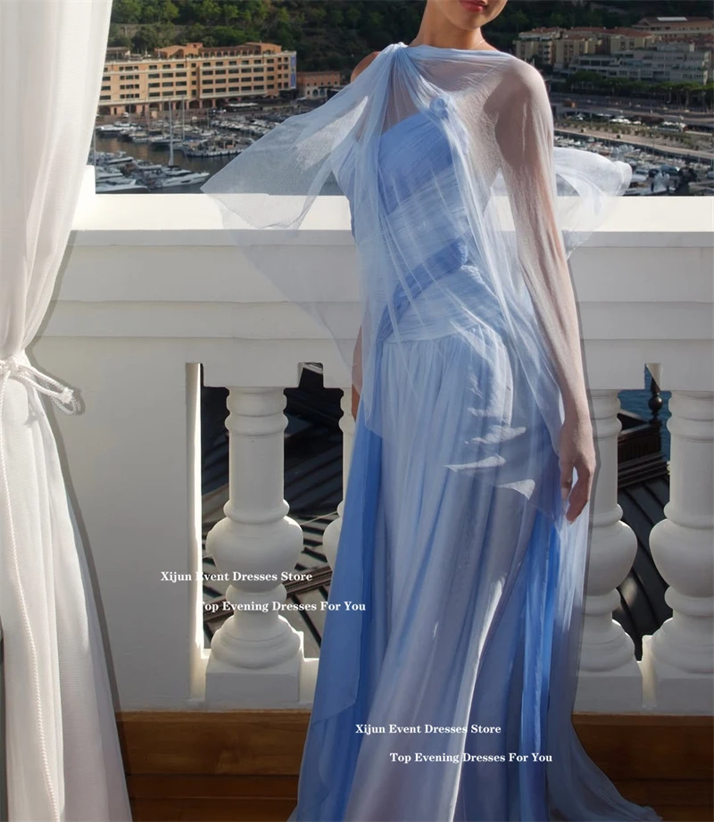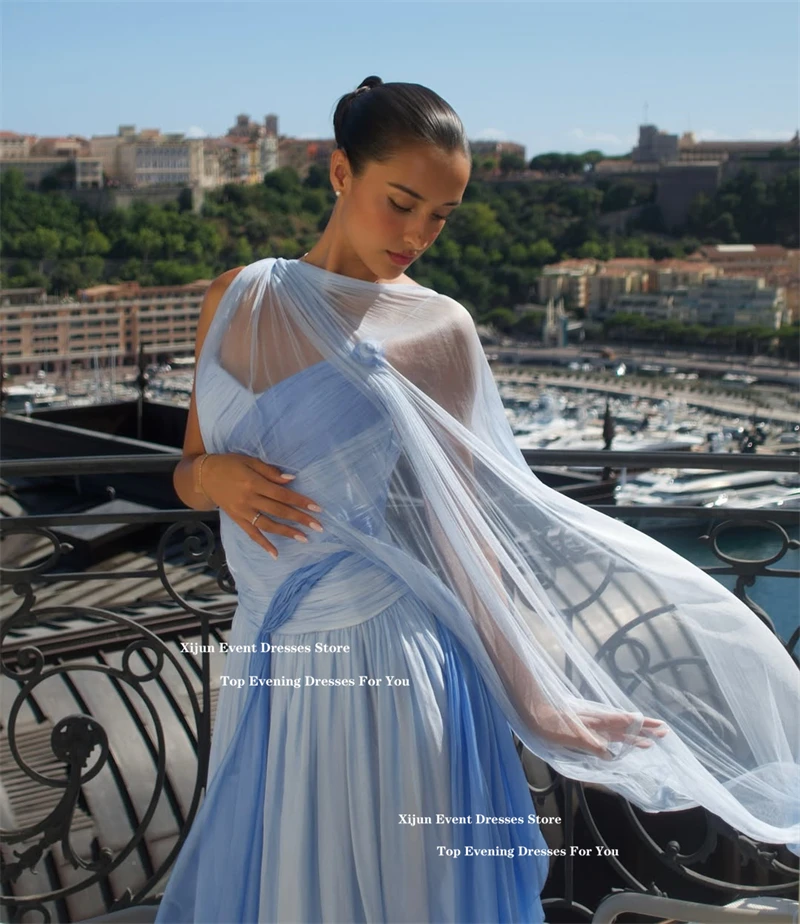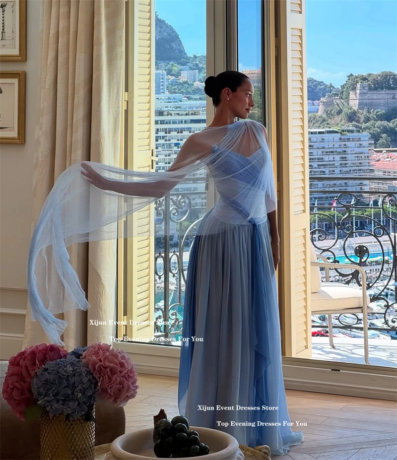 Xijun Elegant Blue Chiffon Evening Dresses Sweetheart Scarf A-Line Long Prom Dresses Pleated Sleeveless Prom Gowns 2025 Customiz