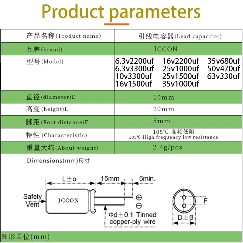 10x20 6.3v2200uf 6.3v3300uf 10v3300uf 16v1500uf 16v2200uf 25v1000uf 25v1500uf 35v1000uf 35v680uf 50v470uf 63v330uf capacitor
