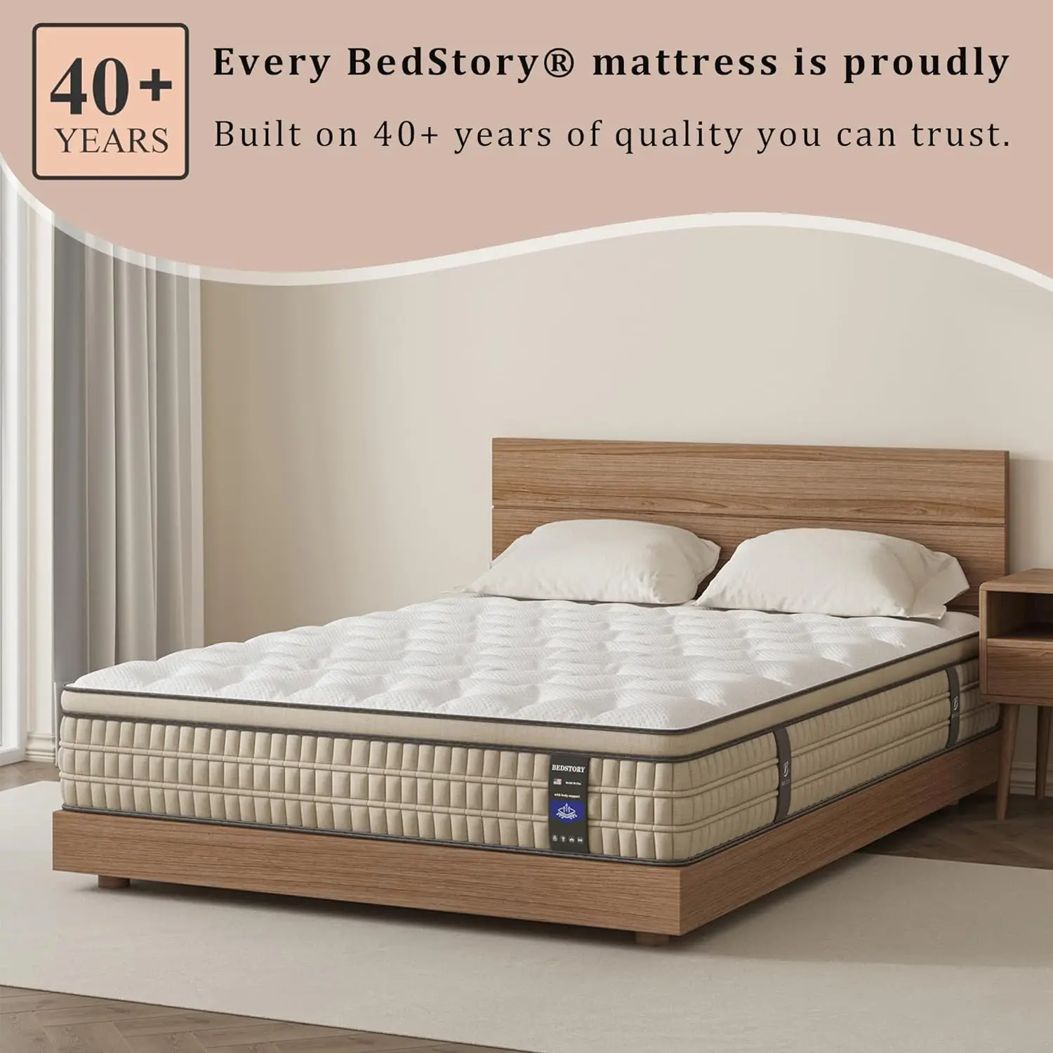 BedStory 12 Inch Full/King Hybrid Gel Memory Foam Mattress, Queen Size Mattress with Breathable Fabric for Comfortable Sleep