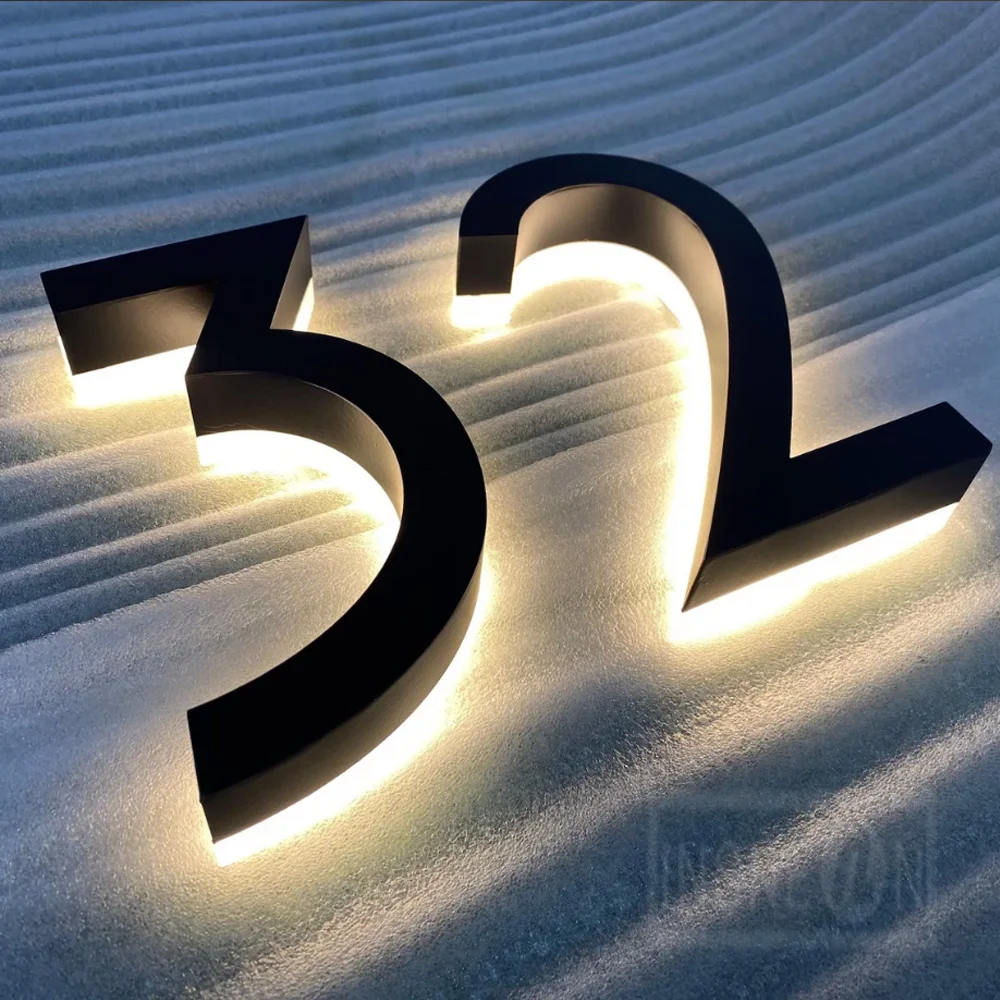 Custom House Number Outdoor Backlit Letters Sign Light Sign for Outdoor Business Storefront Waterproof Illuminated Signage