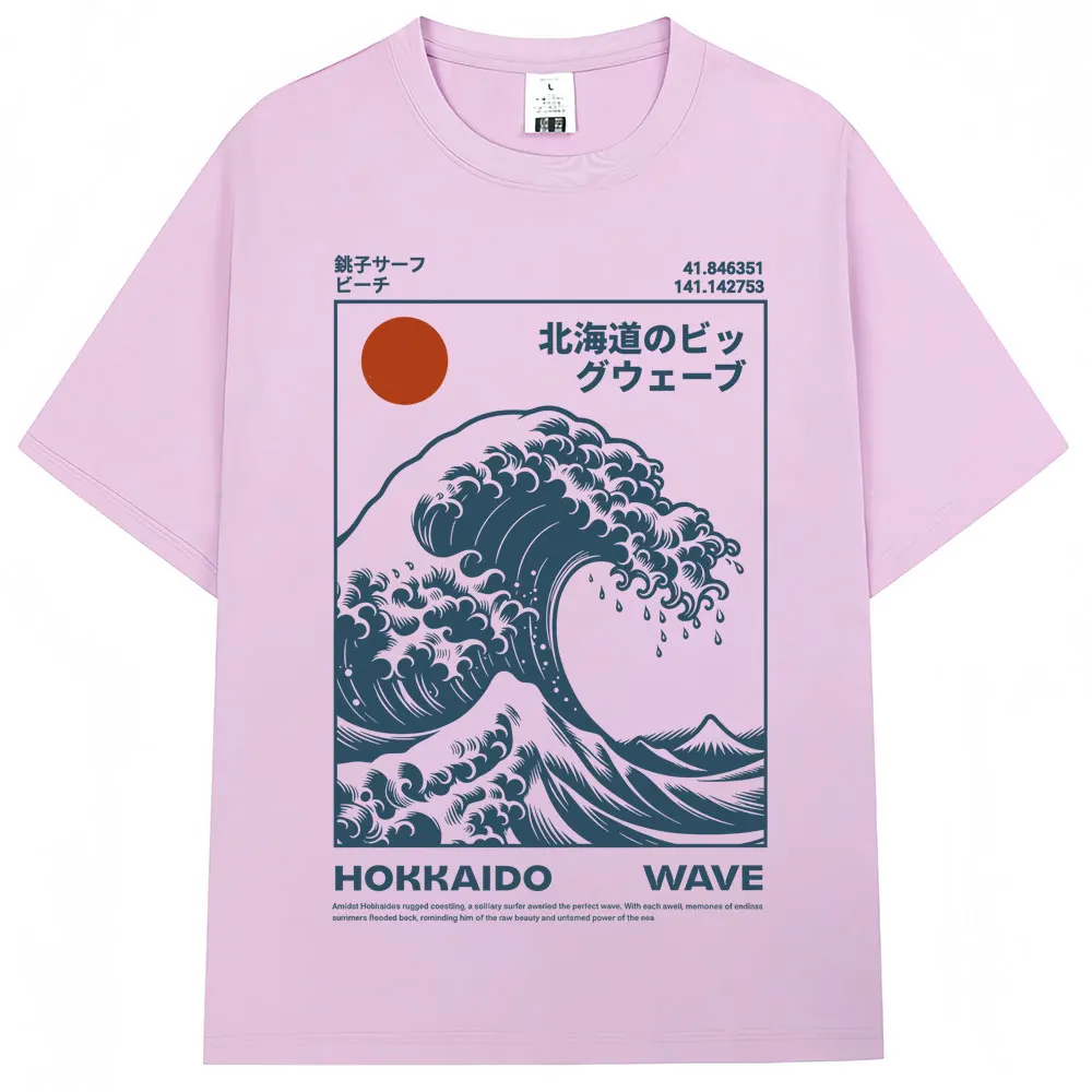 Japanese Style Hokkaido Wave Vintage T-shirt Men Women Harajuku Fashion High Quality T Shirts Oversized Cotton Summer Tee Shirt