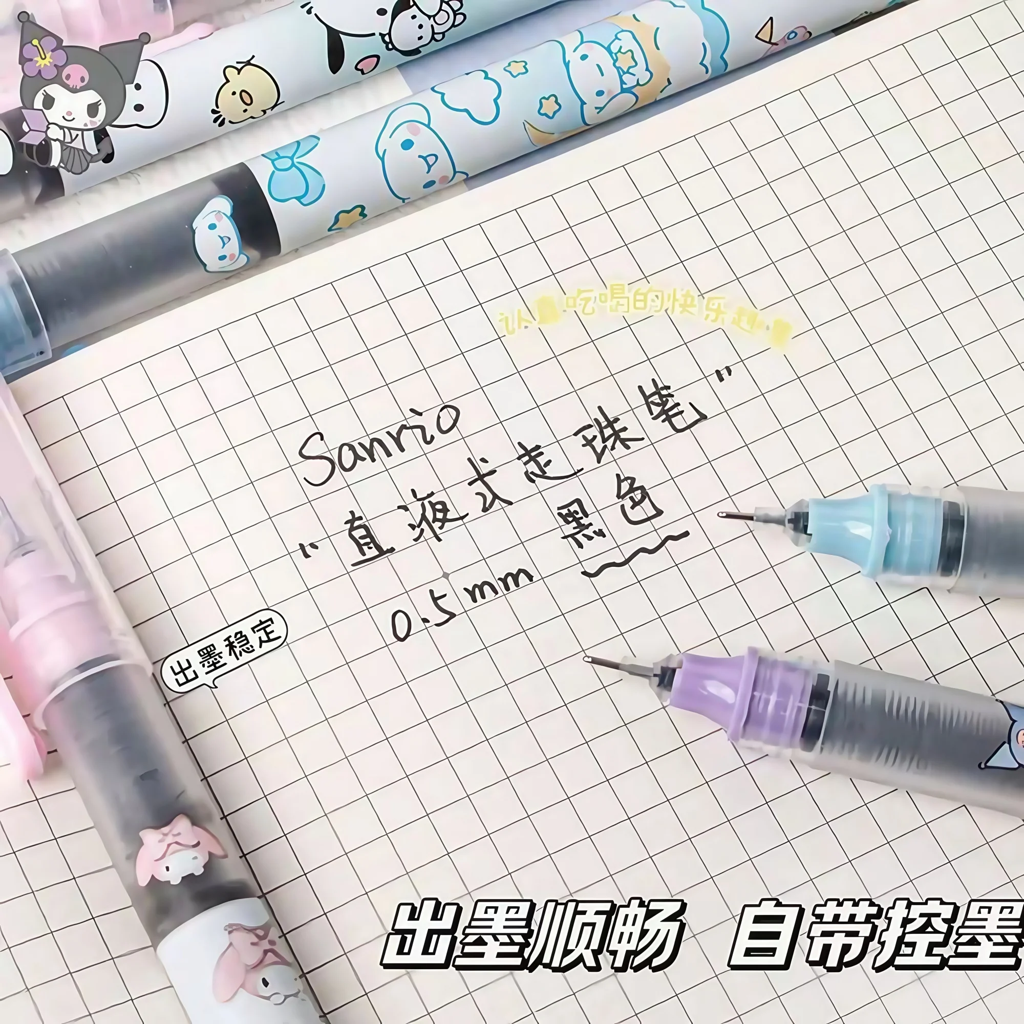 6Pcs/set Sanrio High Quality Needle Type Gel Pens Straight Liquid Ballpoint Pen Kawaii Stationery School Office Supplies Writing