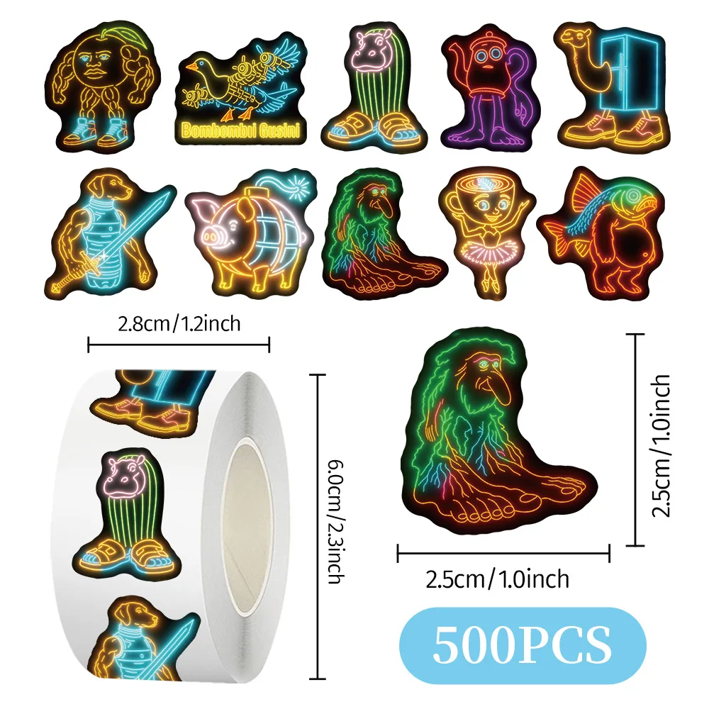 500pcs/Roll Italian Brainrot Stickers Funny AI Abstract TungTungSahur Tralalero Package Sealing DIY PVC Laptop Decals