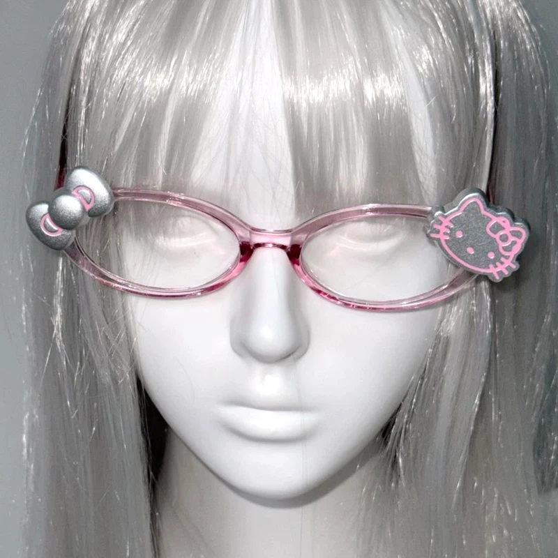 Harajuku Japanese Charm Girl Hello Kitty Glasses Pink Shiny Bow Y2K Hello Kitty Decorative Glasses Birthday Gift