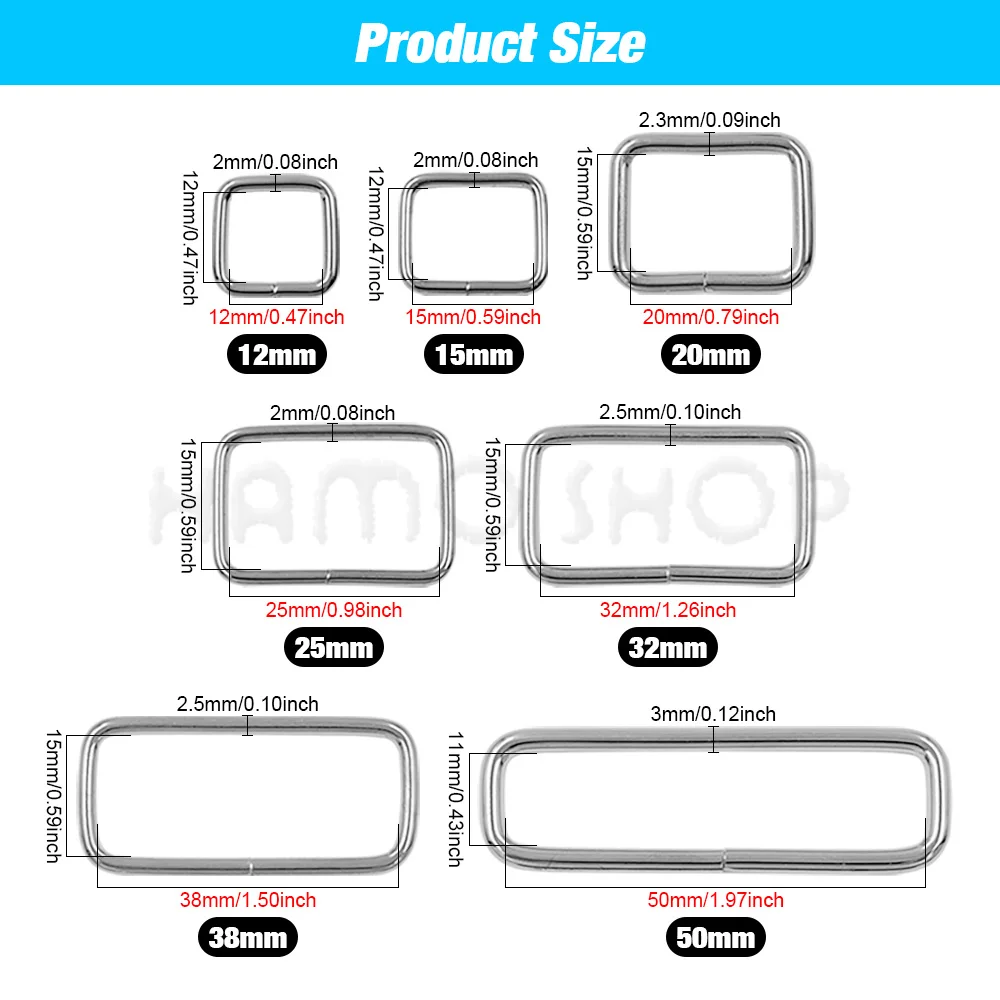10/12pcs Metal Adjustable Rectangle Square Ring Buckle Clasp Slider Belt Loop For Backpack Strap Bag Pets Collar DIY Accessories