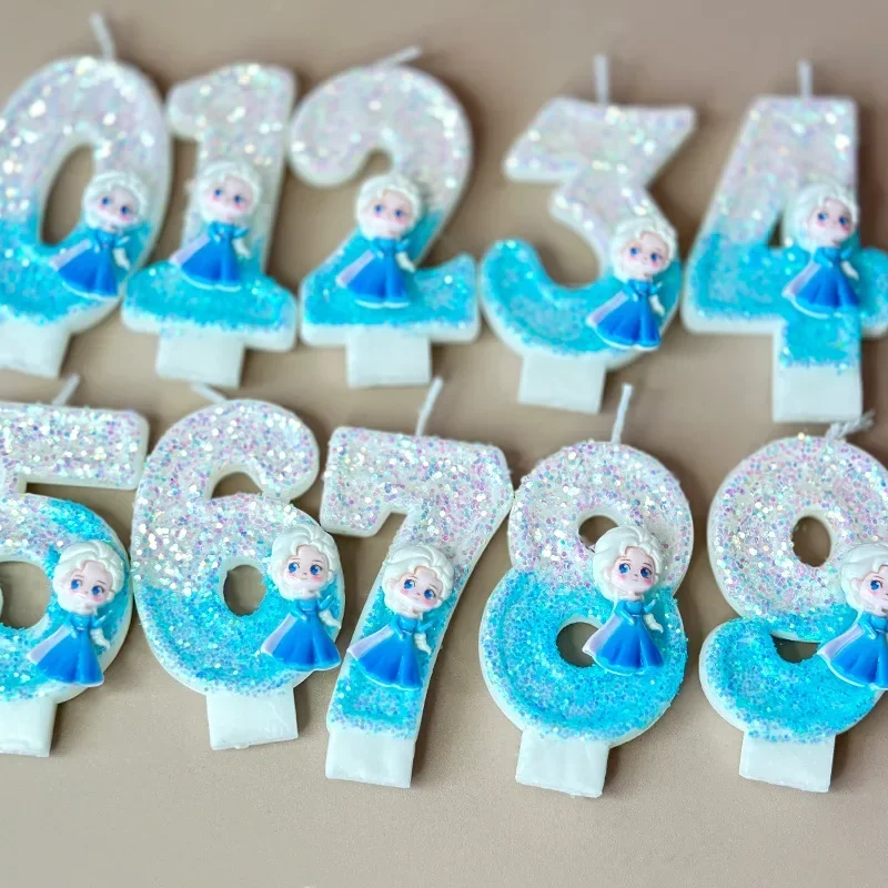 3D Princess Frozen Cartoon Theme Cute Digital Birthday Candles Holiday Party Creative Cake Sequin Candles Baby Shower Gift