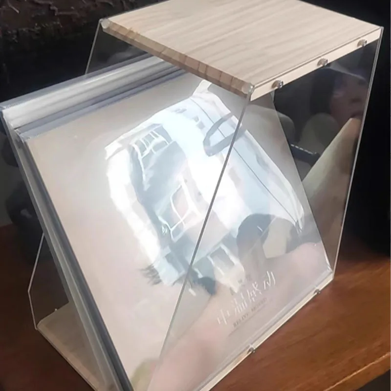 Wooden Record Rack Desktop Ornament Transparent Vinyl Record Display Rack Tape Book Storage Box Solid Wood Organizer