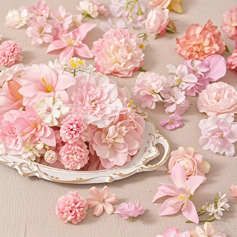 20/50Pcs Pink Artificial Flower Head MSini Silk Artificial Rose Daisy Flower Craft Supplies Wedding Party Wreath Home Decoration