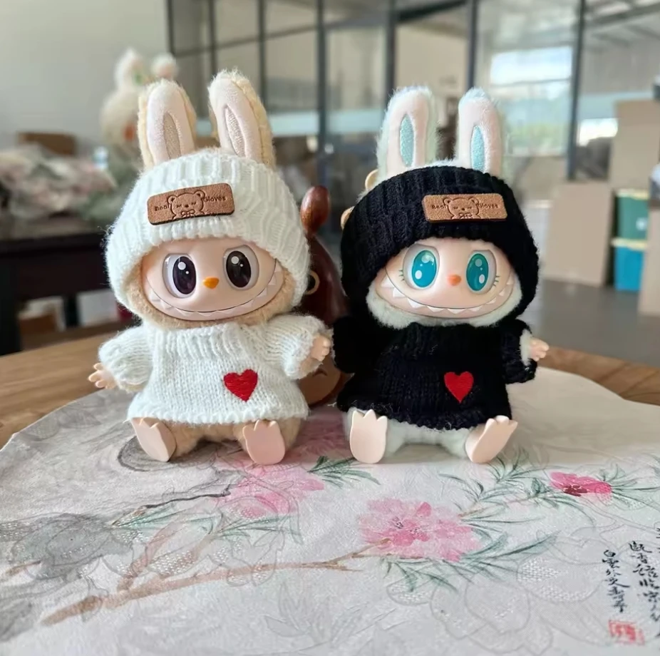 Cute Labubu Doll Accessories Black White Sweater Doll Clothes Heart Sweater for Labubu Doll Toy Collectors Labubu Clothes