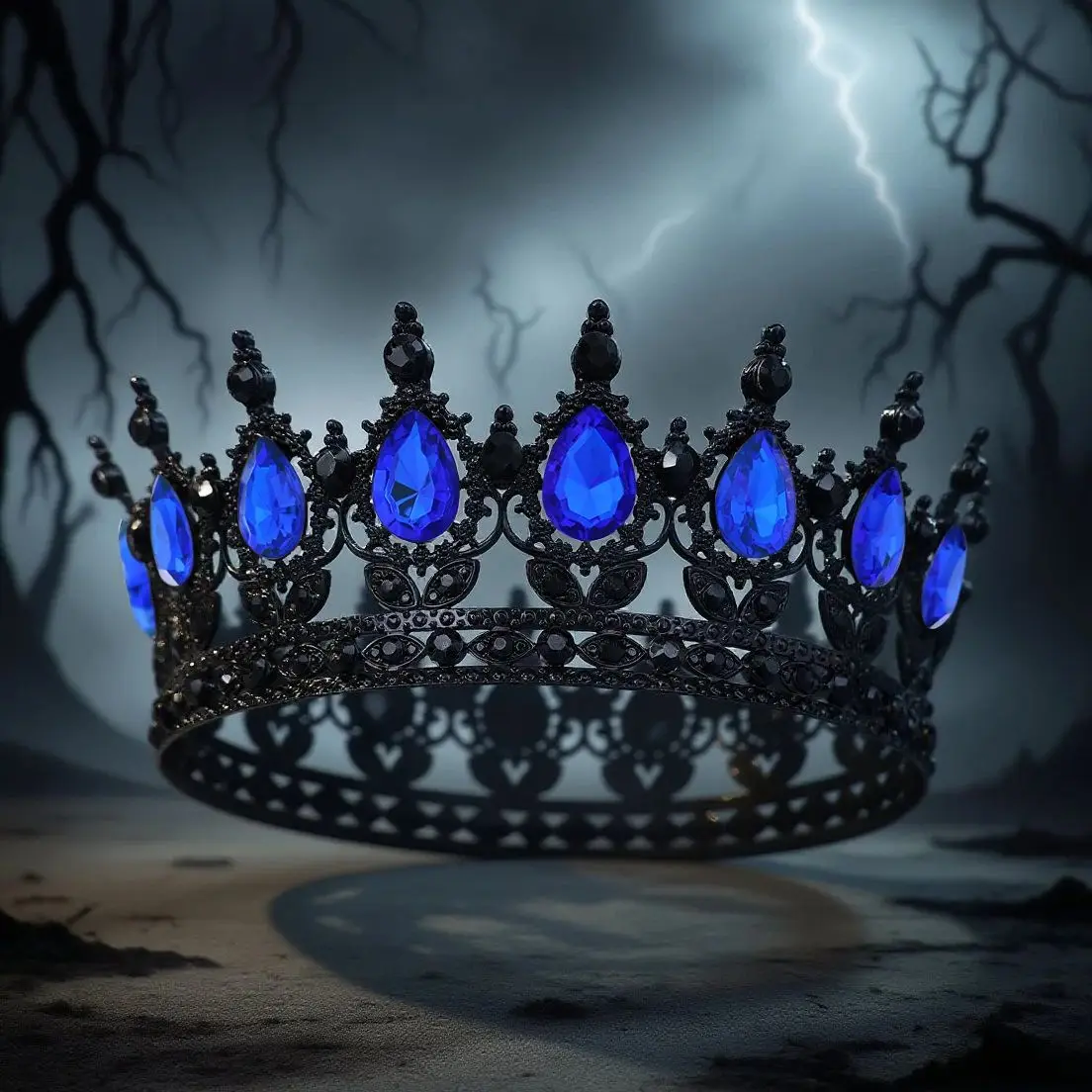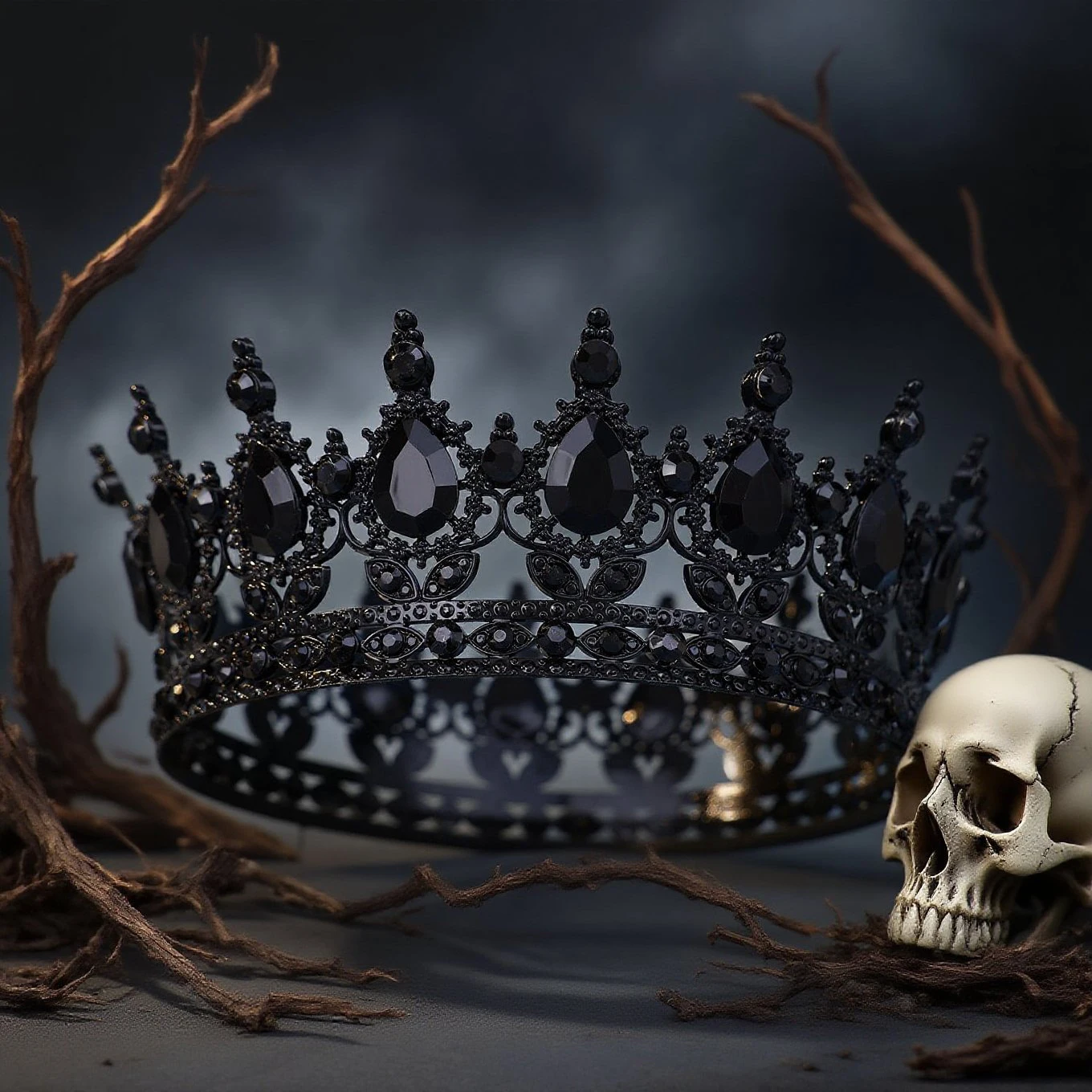 Baroque Vintage Black Crystal Rhinestone Round Tiaras And Crowns For Halloween Party Cosplay Vampire Witch Hair Accessories