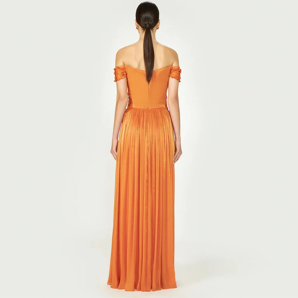 Customized Off-shoulder Georgette Prom Dresses for Women Pleated A Line فساتين سهرة with Slit Ruching Prom Gown
