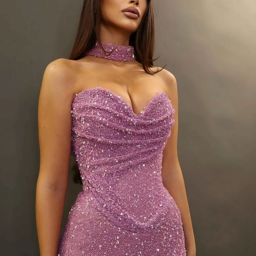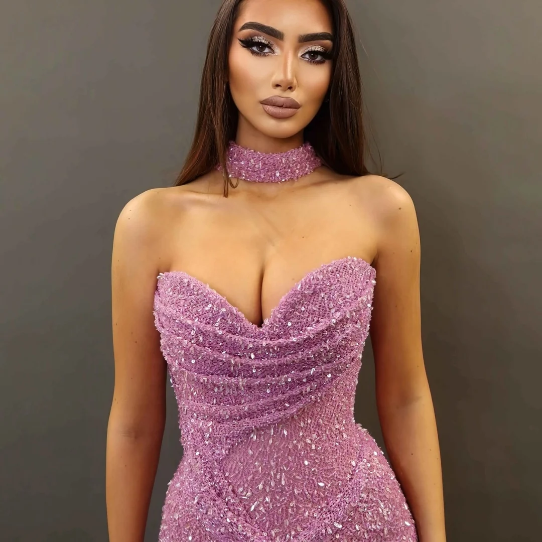 Bella Customize Pink Sequin Strapless Backless robes de soirée Sleeveless A-line Prom Dresses Floor-Length Wedding Dress 2025