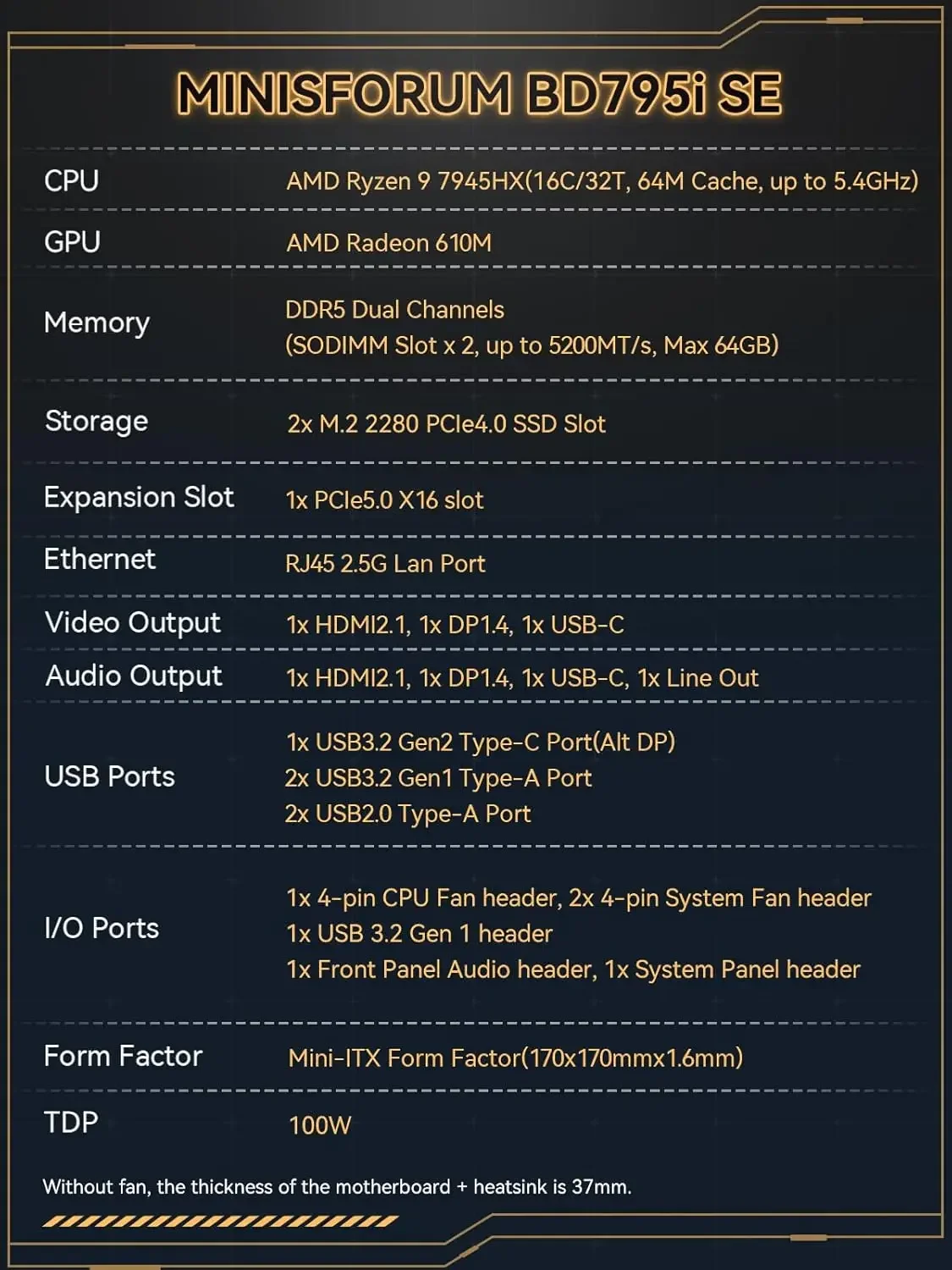 Christmas Deal-Motherboard BD795i SE Mini ITX NAS Motherboard, AMD Ryzen 9 7945HX, 16 C/32 T,PCIe 5.0 x16 Slot, Dual PCIe4.0 M.2