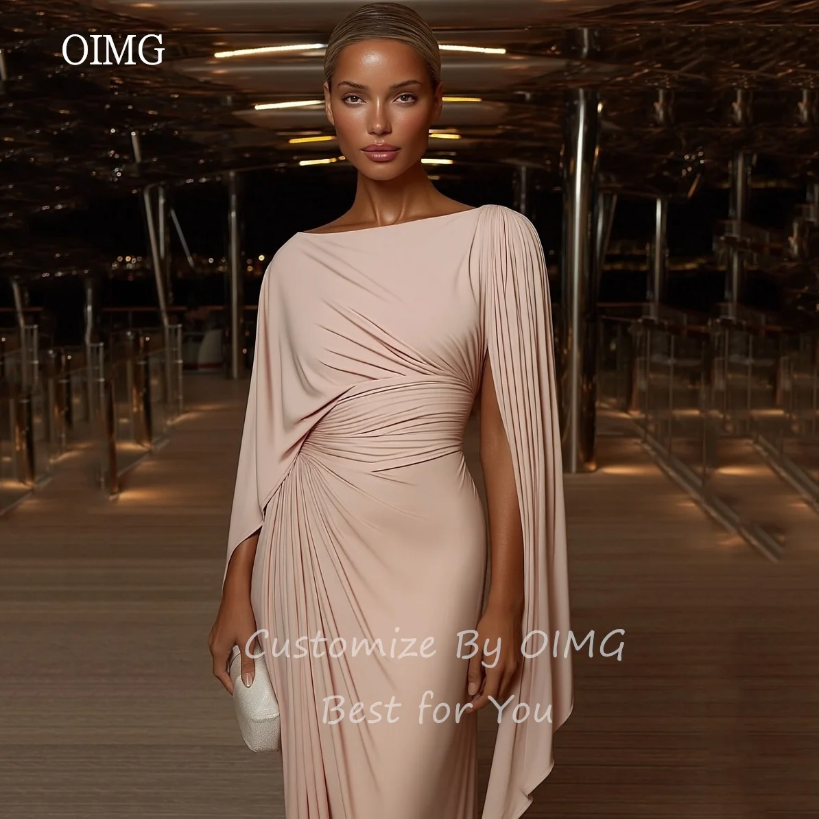 OIMG Classic Full Sleeves Mermaid Prom Gowns O Neck Party Gown Floor Length Evening Dress فساتين شارون Customized