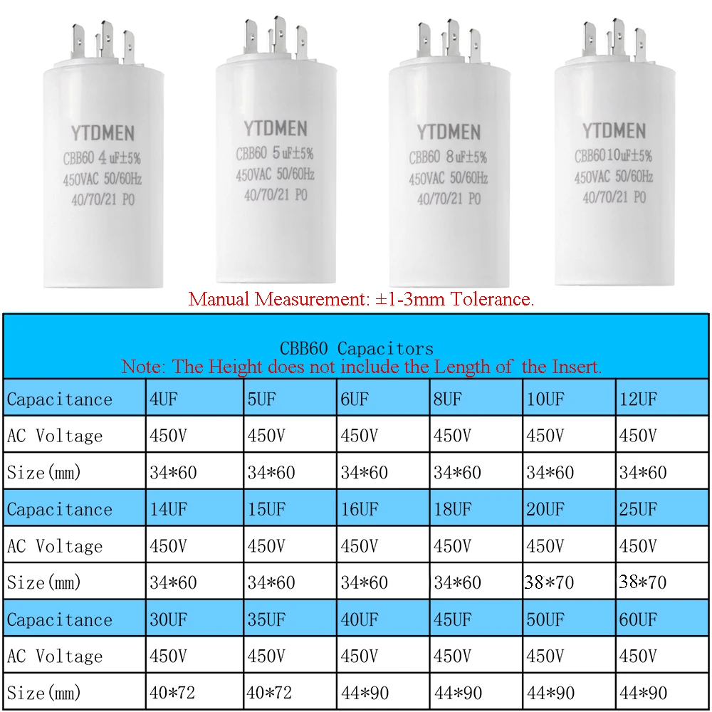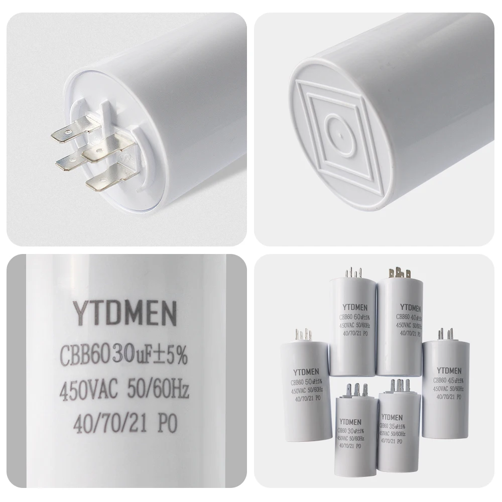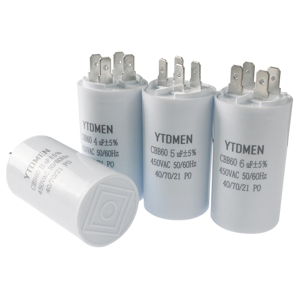 AC 450V CBB60 Dual Insert Motor Starting Capacitor 4pin 4UF-60UF Replacement Motor Run Capacitors For Air Compressor Water Pump