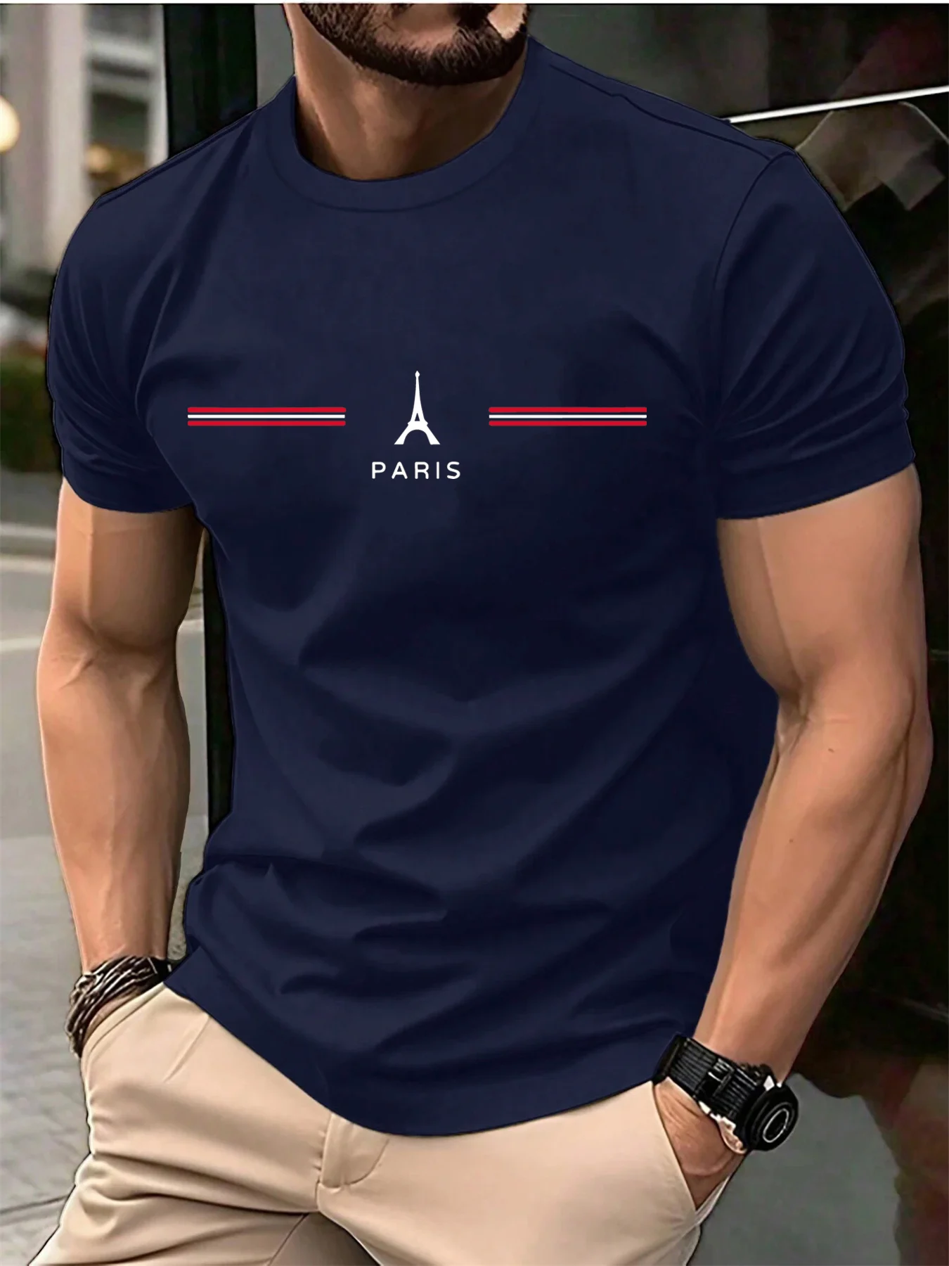 ALI shop - search results ... ... Men's 100% pure cotton summer loose oversized casual Paris letter printed sports round neck short sleeved T-shirt top ::: 2021 ::: :::