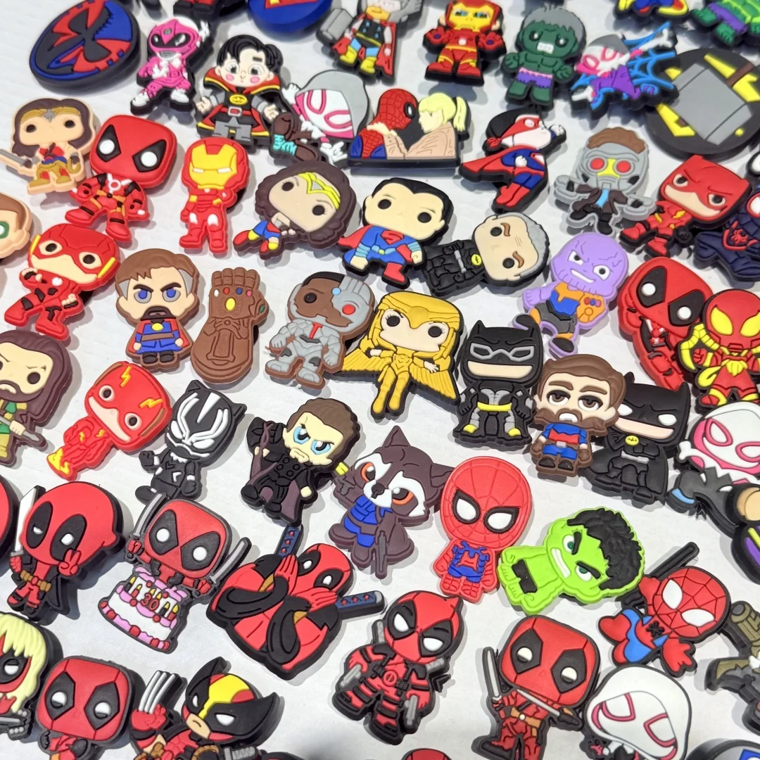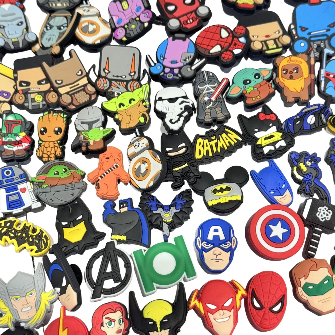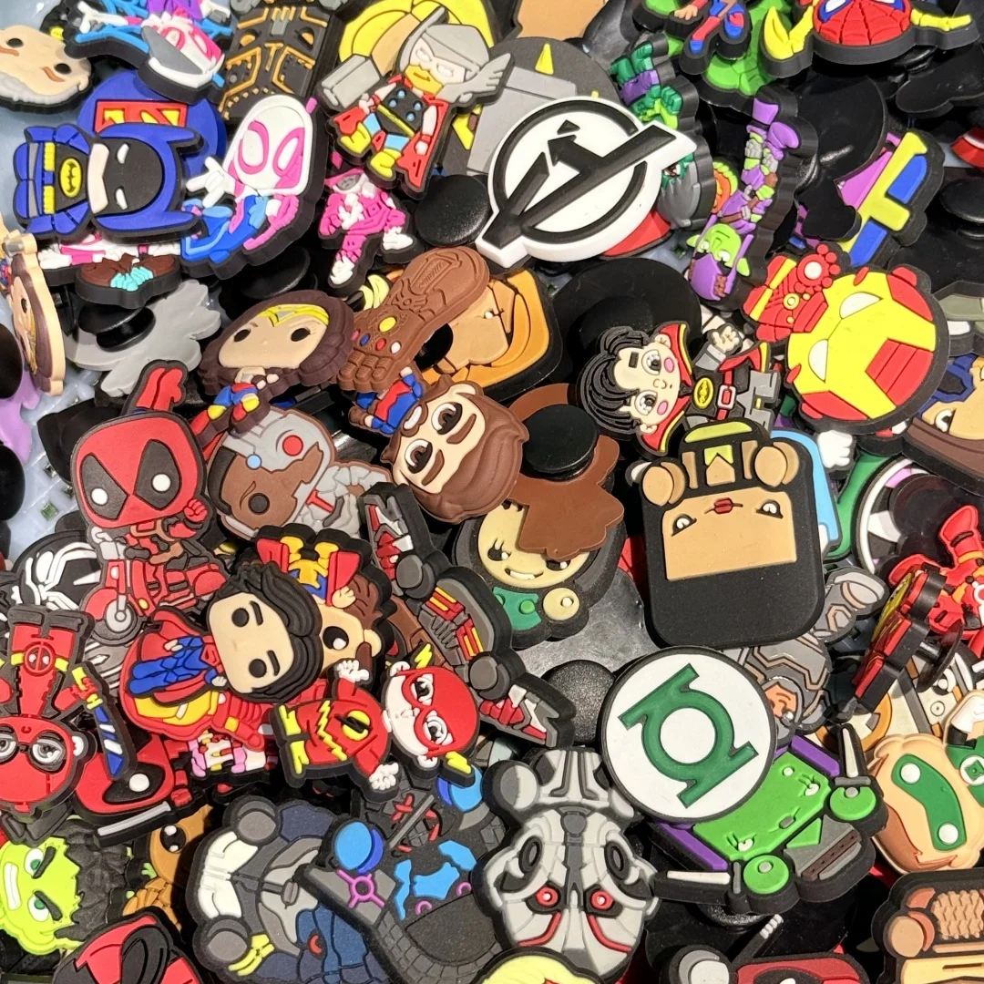 Random 20pcs Miniso Avengers Heros Shoe Buckle Sandal Accessories PVC Shoes Charms Clogs Pins Decor Kids Party Gift