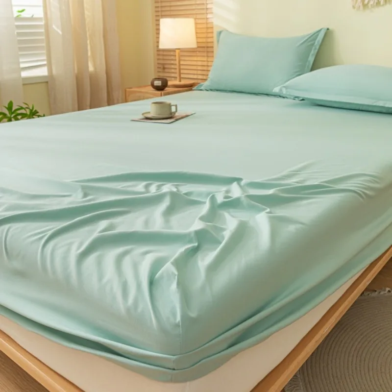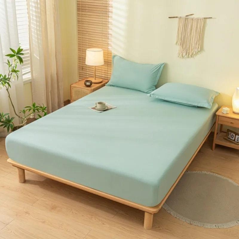 2025 new solid color simple fitted sheet single piece no pillowcase machine washable household mattress protective cover
