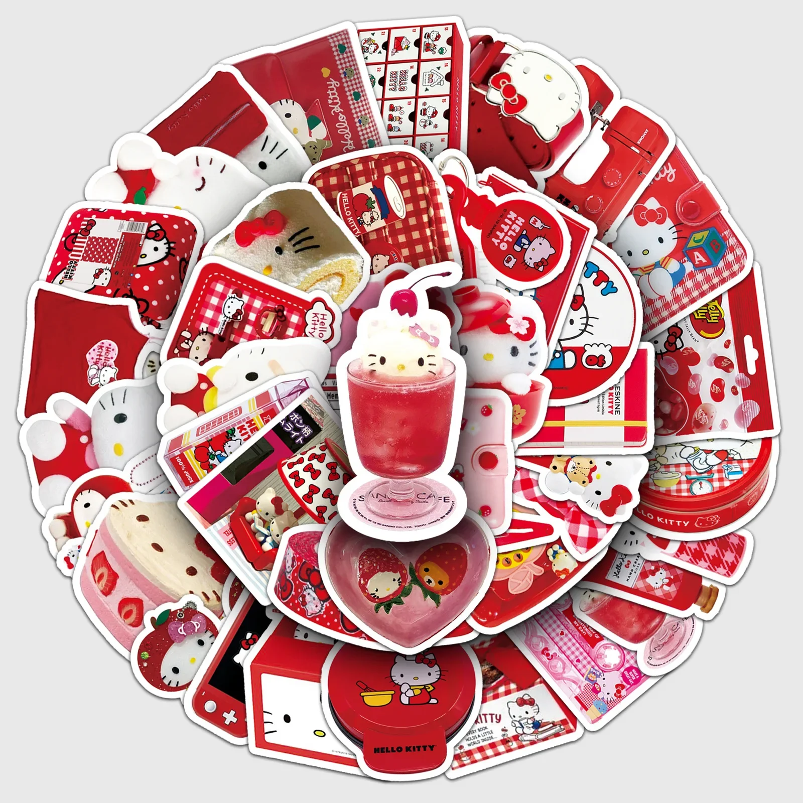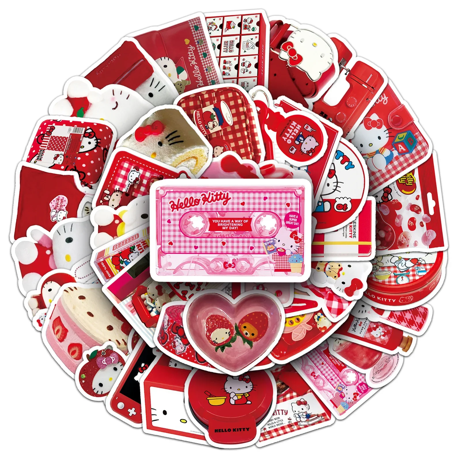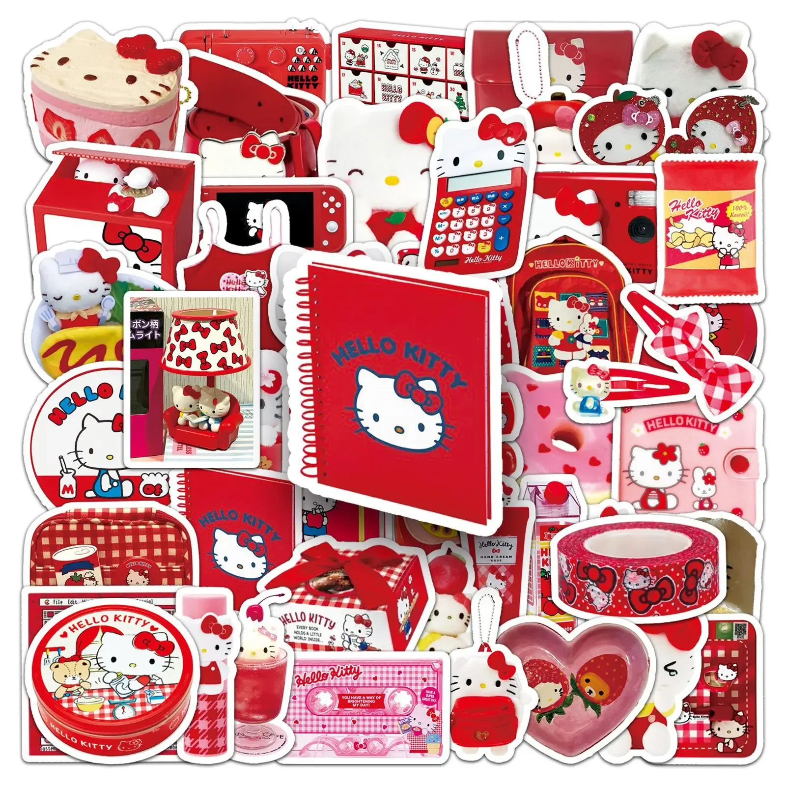 Kawaii 50PCS Classic Red INS Style Hello Kitty Stickers DIY Phone Laptop Luggage Skateboard Graffiti Decals Fun for Gift