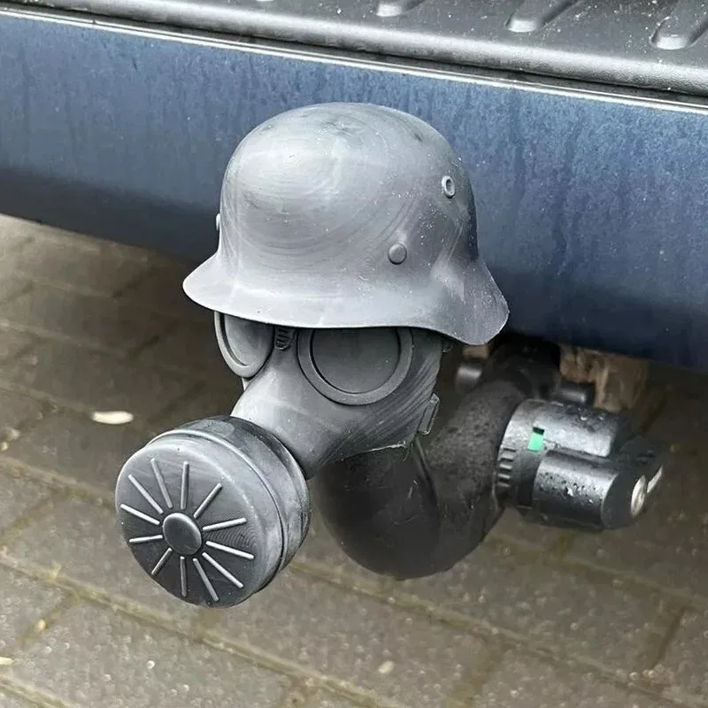 Trailer Hitch Cover With Steel Helmet And Gas Mask 3D Printed Trailer Hitch Ball Cover Prevent Receiver Tube From Rusting