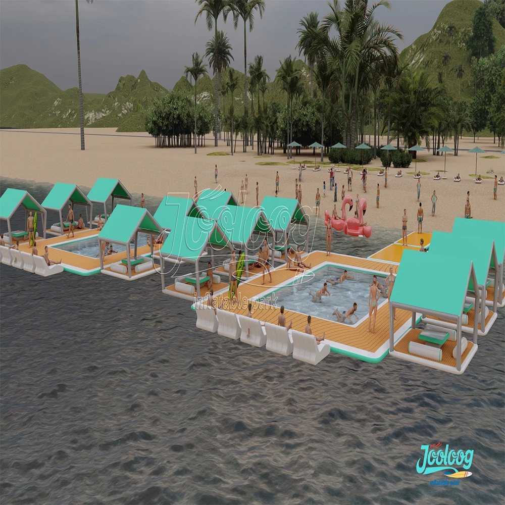 Summer Water Entertainment Inflatable Water Leisure Platform Inflatable Floating Island With Tent