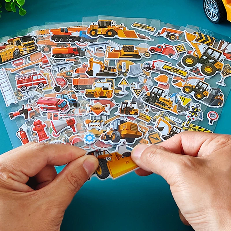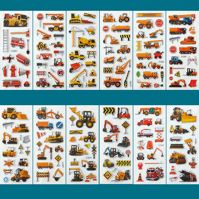 10 Mixed Packs Kids Stickers Puffy Bulk Stickers for Girl Boy Birthday Gift Scrapbooking Cartoon Engineering Vehicle Stickers