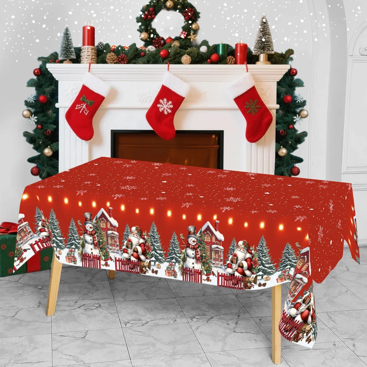 Christmas Santa Claus Tablecloth Plastic Rectangle Table Cover Party Decor for Home Kitchen Dinning Table Navidad Decorations