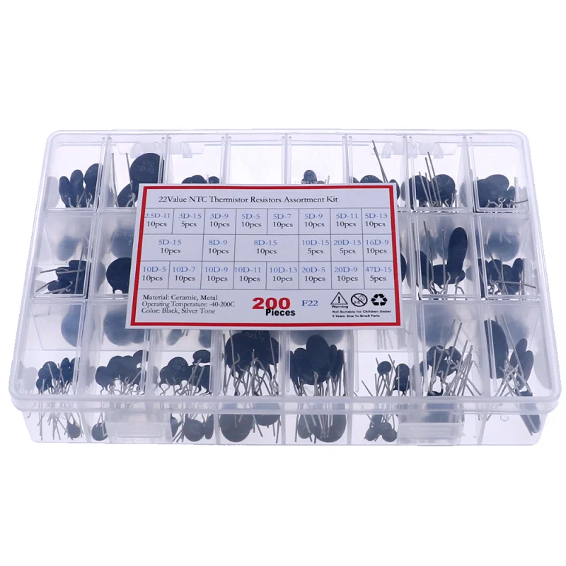 200Pcs 22Value NTC Thermistor Negative Temperature Coefficient kit 3D-15 5D-7 5D-11 8D-9 8D-15 10-5 10D-9 10D-11 20D-5 47D-15