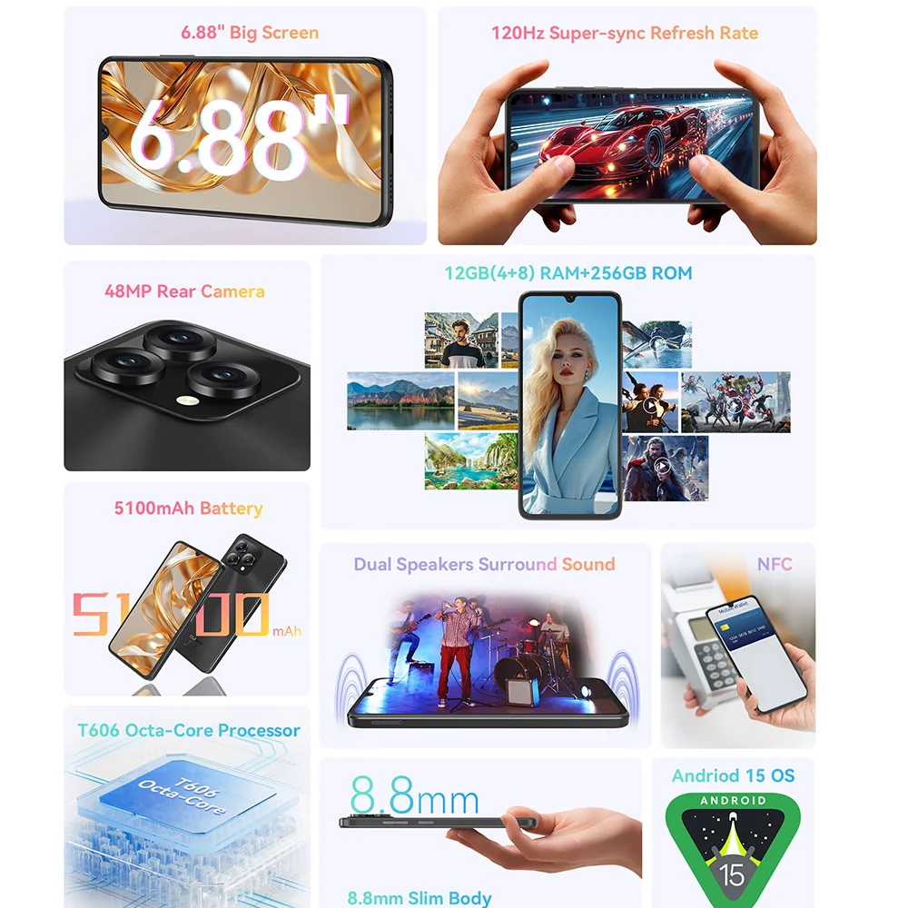 NEW CUBOT A40 4G Smartphone 6.88-inch 120Hz Display 48MP Main Camera 12GB RAM+256GB ROM 5100mAh Battery Android 15 NFC