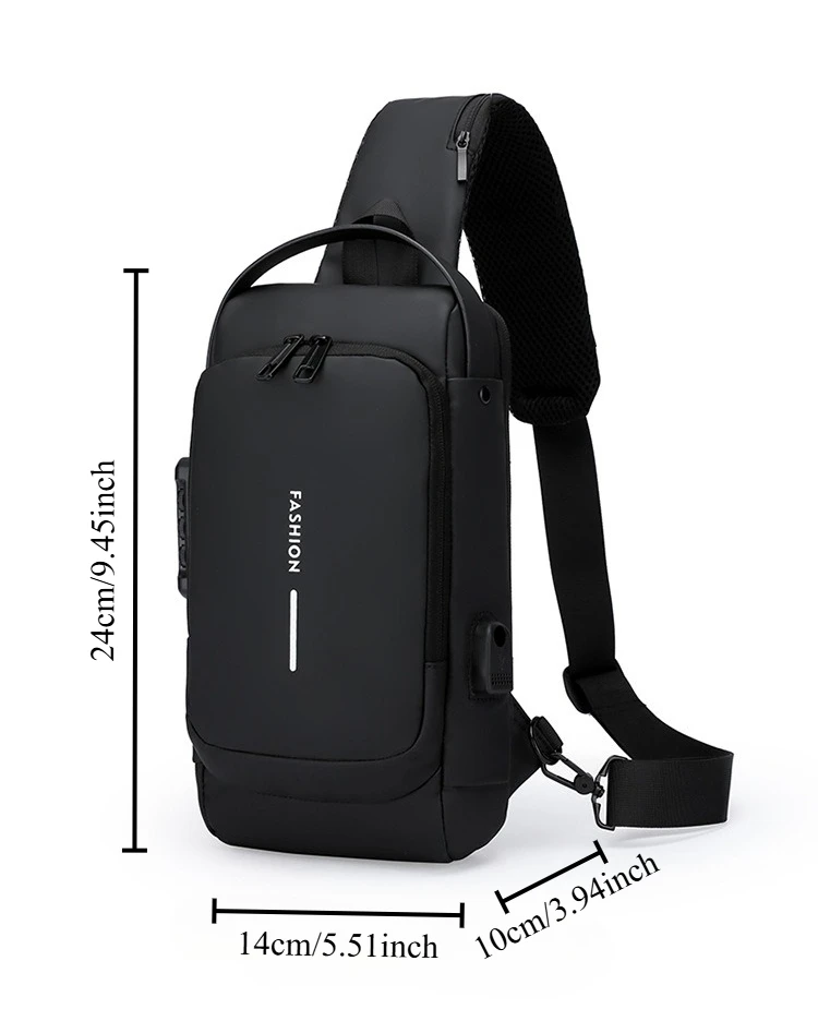 1pc Men'S Anti-Theft Password Lock Chest Bag - Made of Durable Oxford Fabric, Adjustable Shoulder Strap,Suitable for Motorcycles