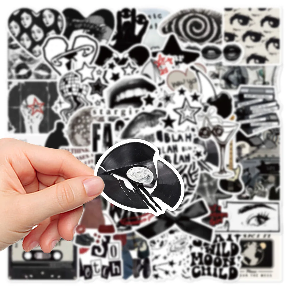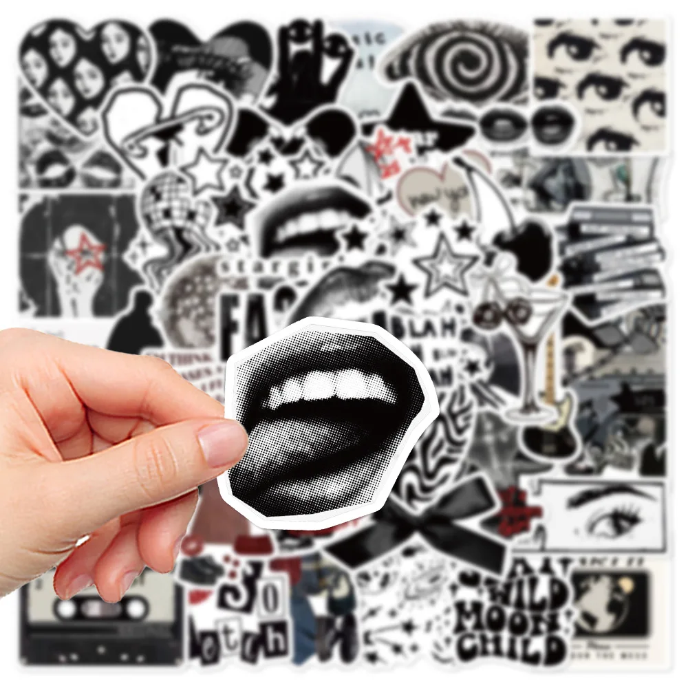 aliexpress , ali , shop , ali shop , online , store , online shop , online store , buy , sell , 50Pcs 90s 00s Retro Black and White Y2K Aesthetic Stickers For Luggage Laptop Guitar Phone Diary Waterproof Vinyl Decals