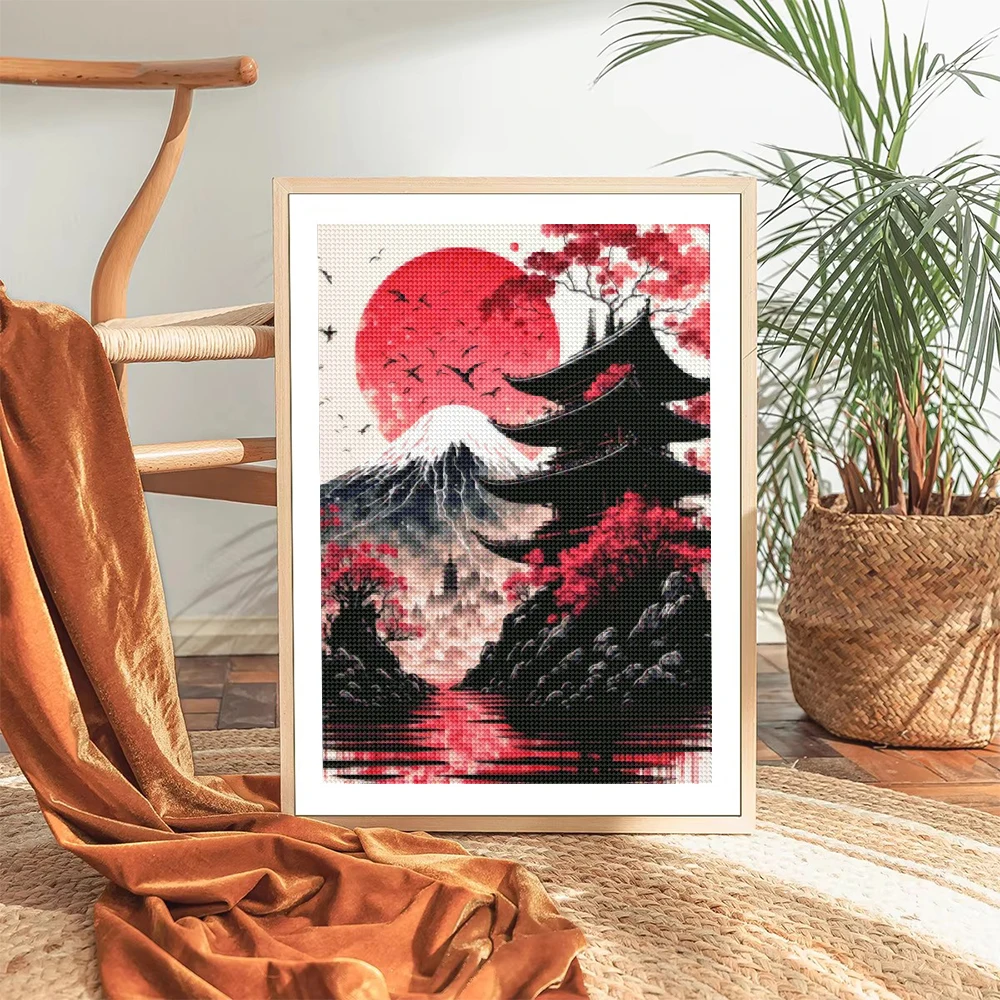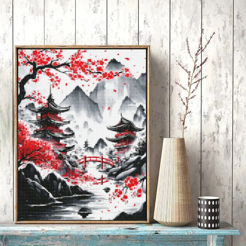 DIY Diamond painting Japanese Natural Landscape Full Diamond Mosaic Rhinestone Embroidery Sakura Art Cross Stitch Home Decor