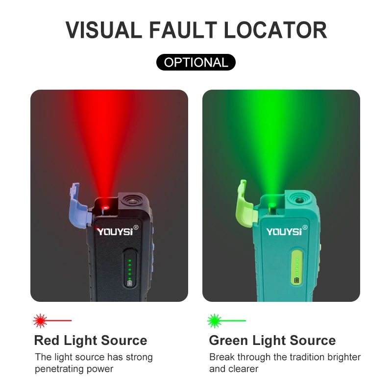 YOUYSI Rechargeable Green Light Tester VFL 15-50mw Fiber Optic Laser Visual Fault Locator Equipped with LED lighting function