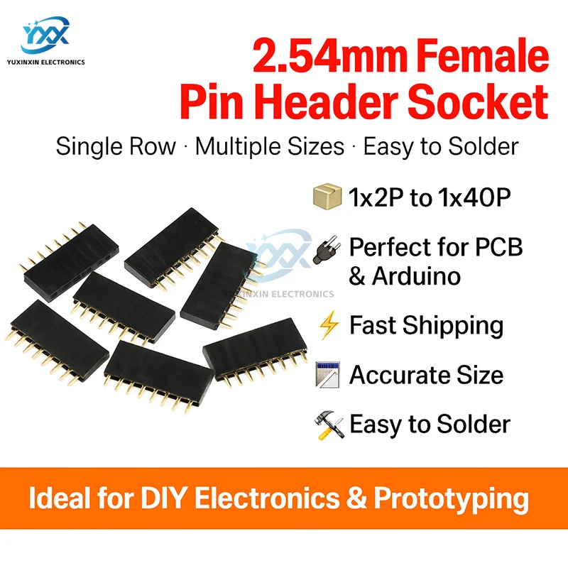 10PCS Single Row Female Pin Header Socket Pitch 2.54mm Pin Connector 1*2p 3p 4p 5p 6p 7p 8p 9p 10p 12p 14p 16p 18p 20p 22p 40p