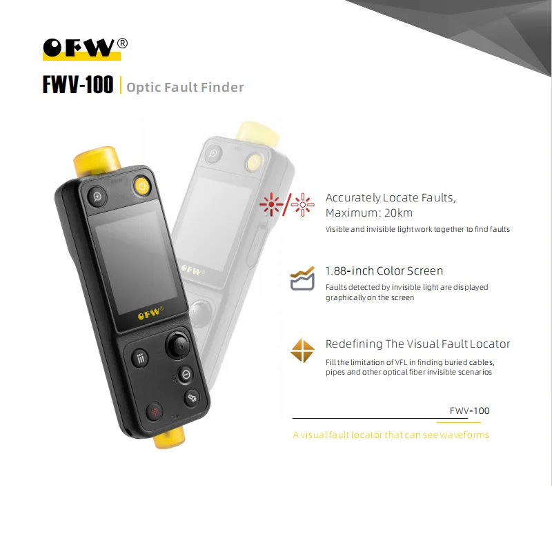 OFW Optic Fault Finder 20KM Mini OTDR Fiber Ranger Support Active Fiber Test(Optional) FTTB/H Breakpoint Tester Meter 10mw VFL