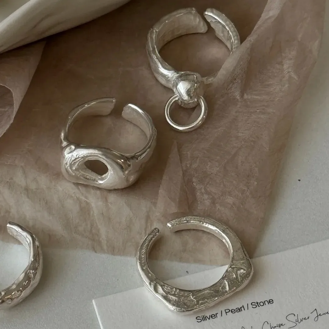 aliexpress , ali , shop , ali shop , online , store , online shop , online store , buy , sell , PANJBJ 925 Sterling Silver Frosting Geometry Ring for Women Wide Texture Versatile Handmade Ins Jewelry Gift Dropshipping
