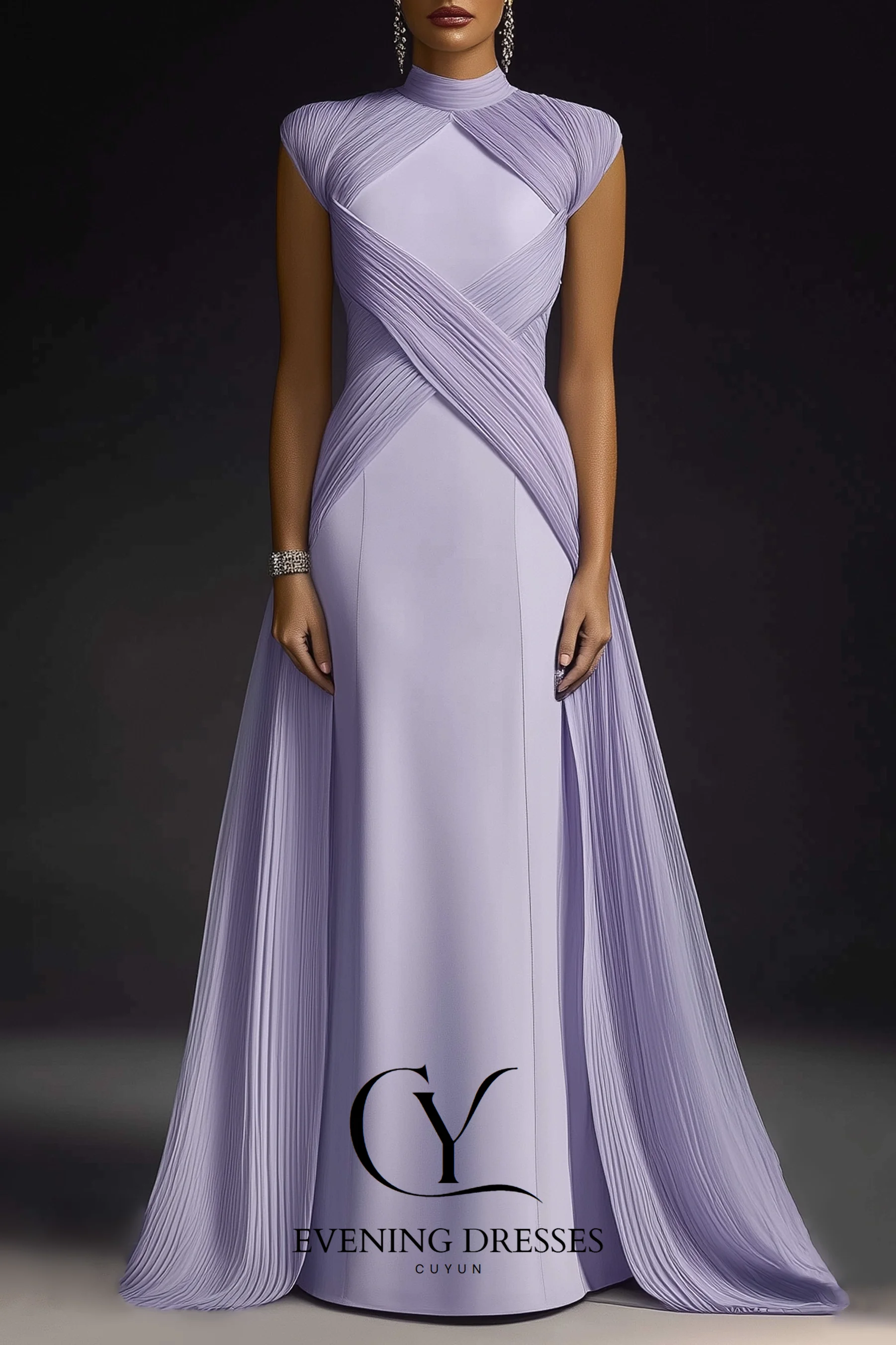 CUYUN Lavender 2025 Luxury Women Evening Gown High Collar Cap Sleeves Party Gown Customized Formal Dresses for Wedding Party