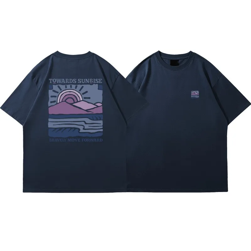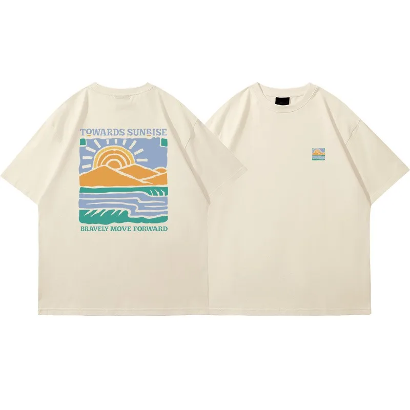 American Retro Pattern Printed Short-sleeved Crew Neck Cotton T-shirt Uni Oversized Top Casual Loose Fashion Streetwear Top