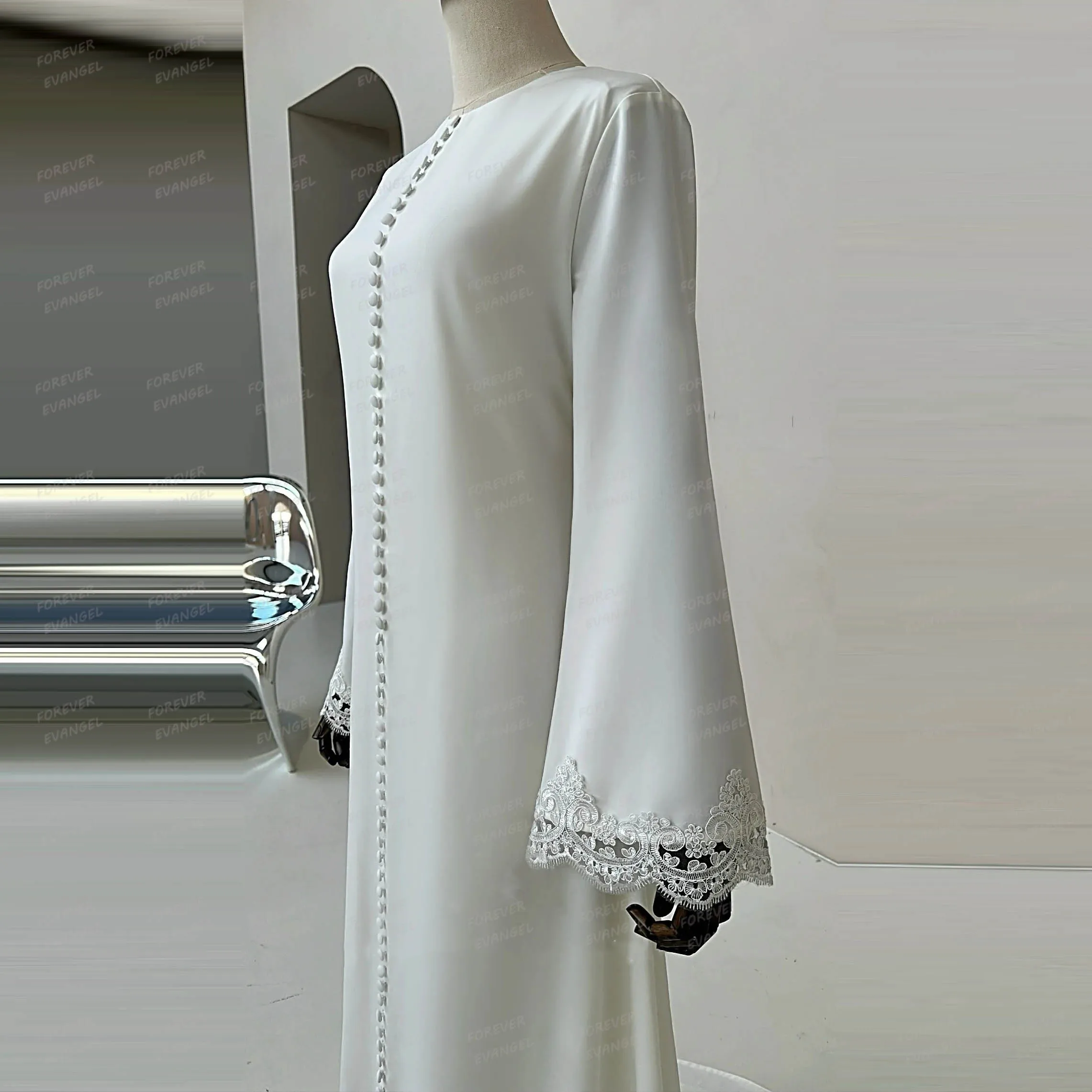 Simple Elegant Wedding Dresses A Line Woman's Formal Lace Long Sleeve Bride Gowns Button Sweep Train Customized Vestido De Novia