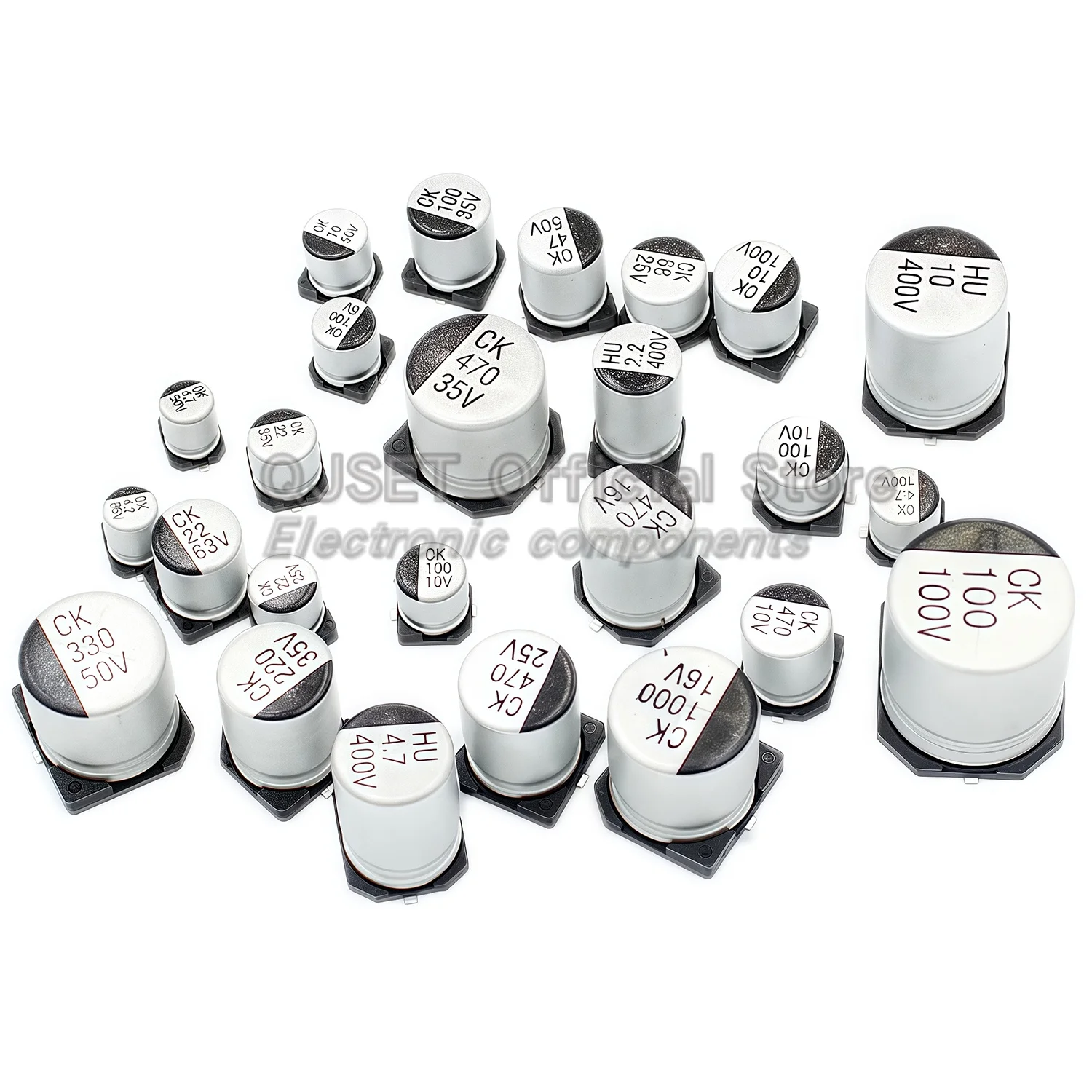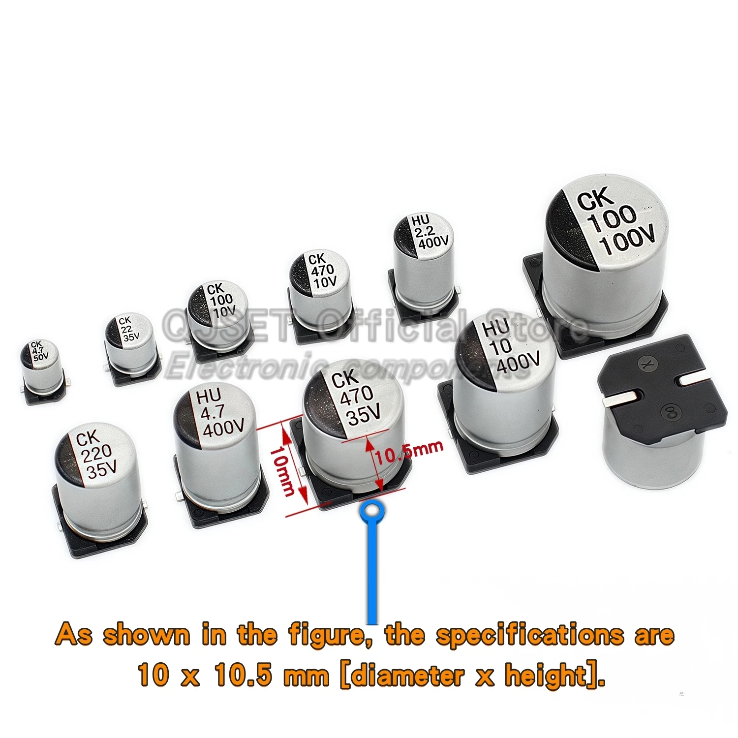 10Pcs SMD Aluminum Electrolytic Capacitor 6.3V 10V 16V 25V 35V 50V 100V 400V 2.2UF 4.7UF 10 22 33 47 100 220 330 470 680 1000UF