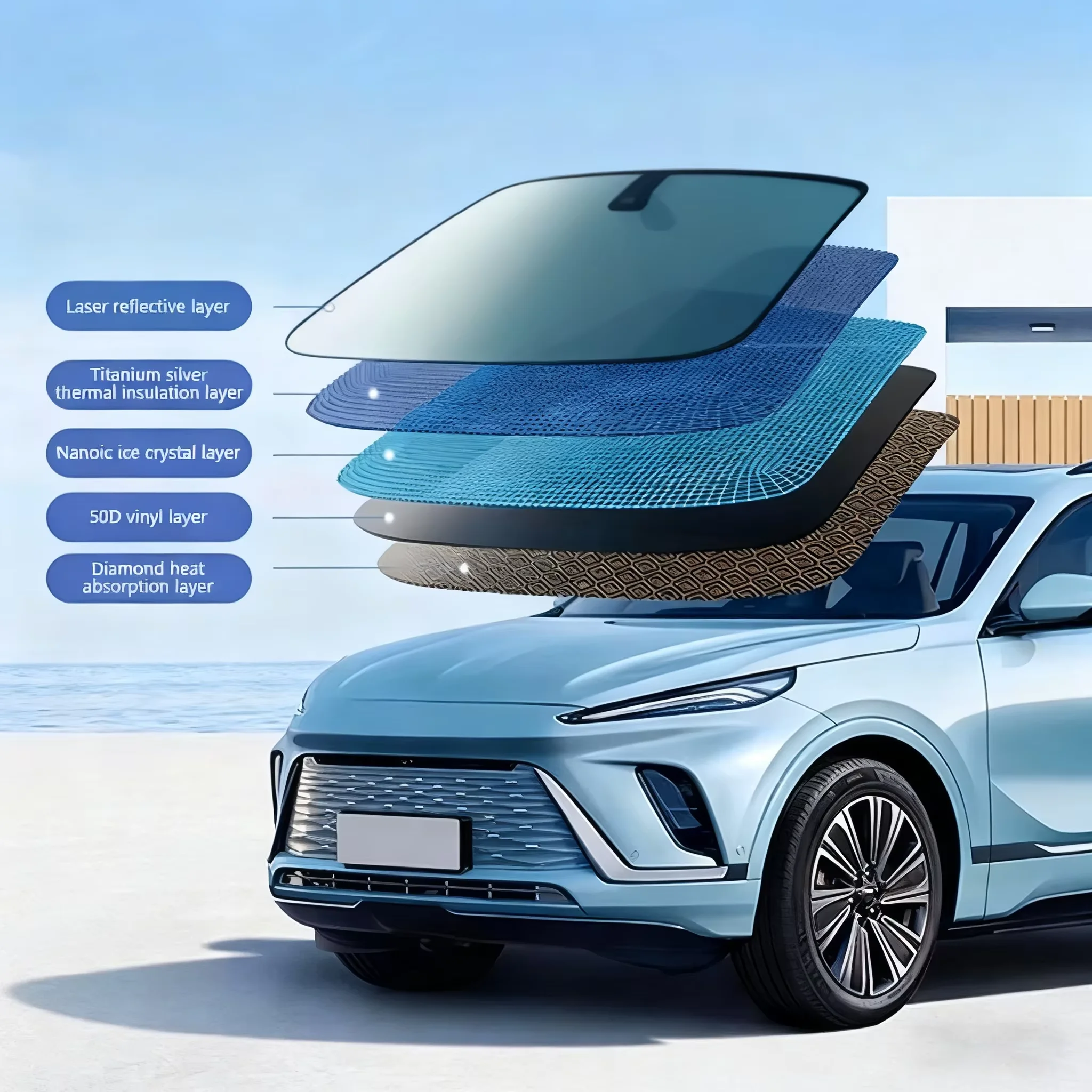 5-Layer Car Windshield Sun Shade Cover Foldable Thicken Front Window UV Refletive Sunshade Curtain Sun Protection Cover