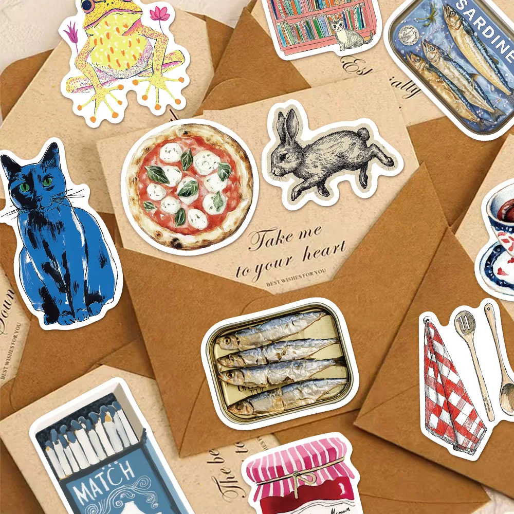 50PCS Retro Furniture Animal Daily Necessities Graffiti Stickers Phone Cases Notebook Skateboarding Water Cup Stickers