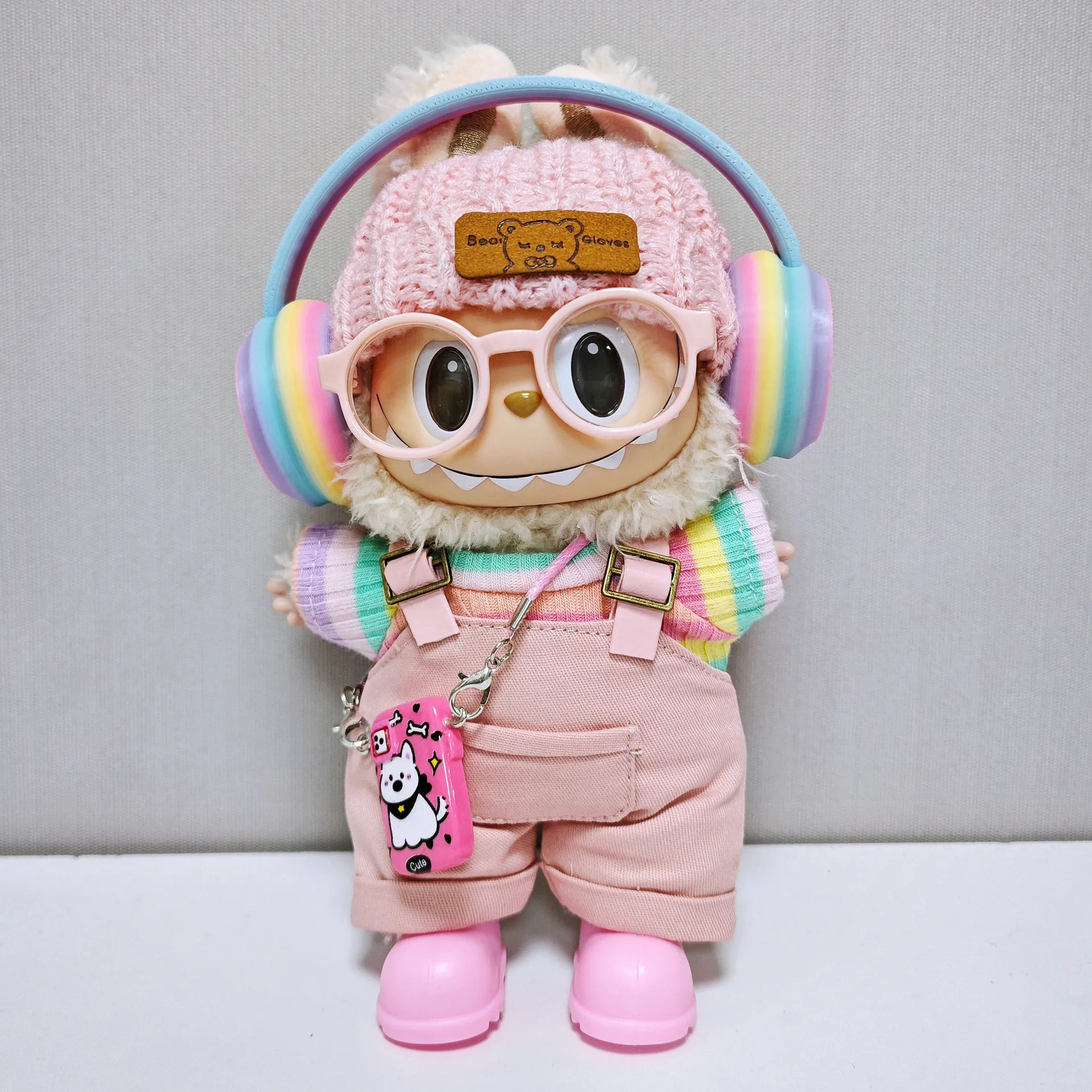 For Labubu Baby Clothes 15cm - 17cm, Made of Labubu Fabric, Pink Overalls, Paired with Baby Clothes