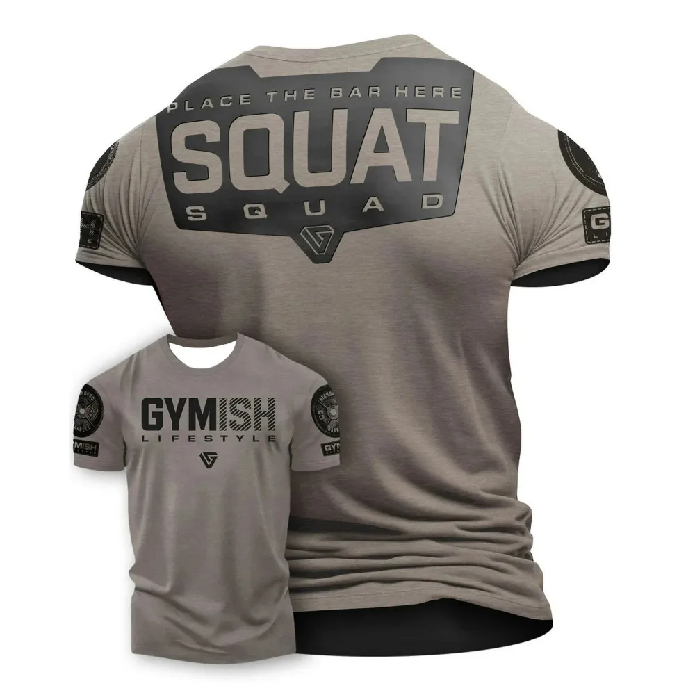 Hot selling summer men's gym training letter printed polyester micro elastic breathable round neck T-shirt outdoor sports top