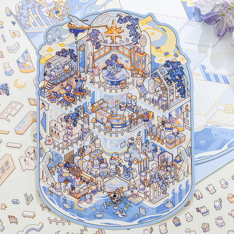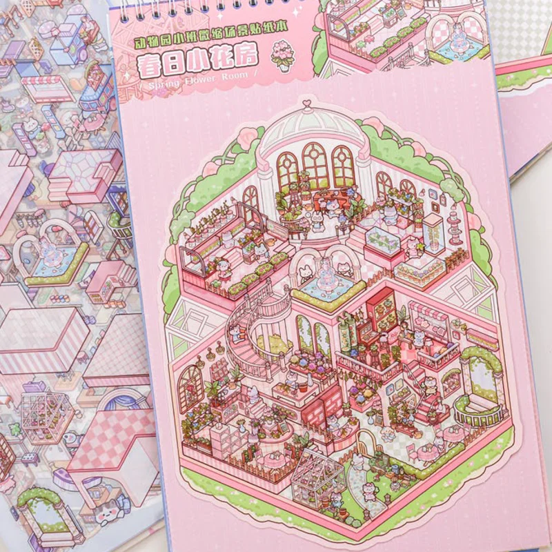 20 pcs Super Large Miniature Scene Sticker Book 3D Cute Three-dimensional House DIY CStudents Educational Fun Sence Sticker